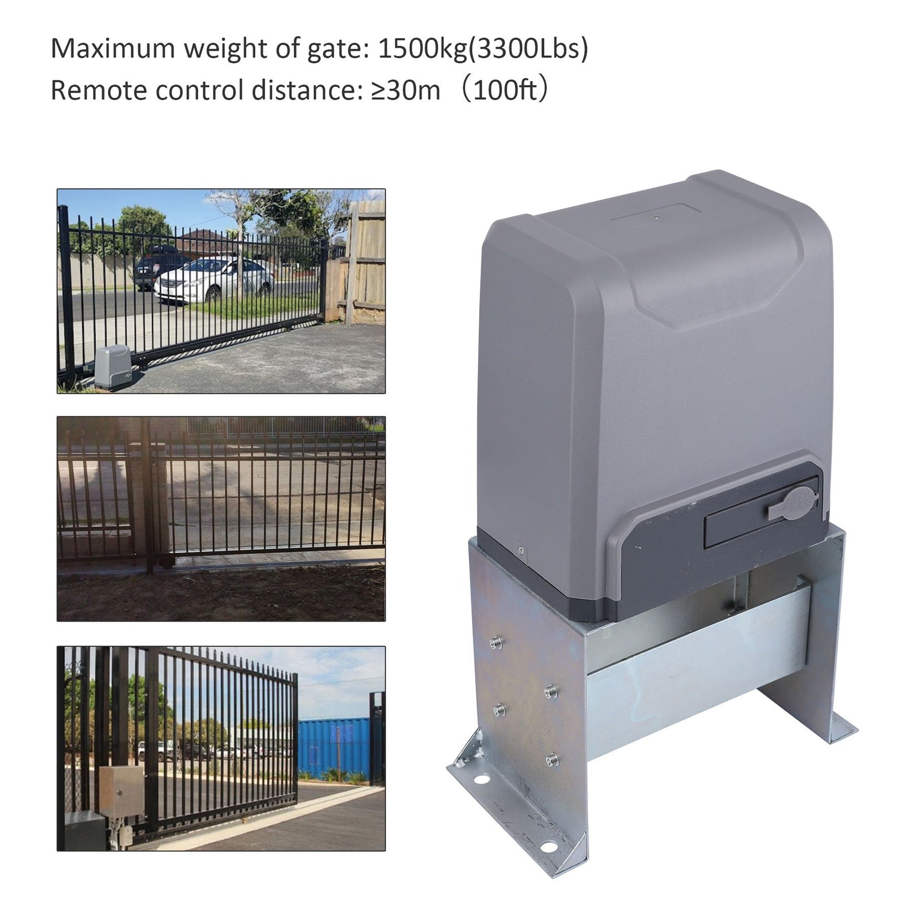 - Universally Compatible: Supports a broad range of gate types up to 40 feet long and 3,300 pounds, offering versatile installation options.