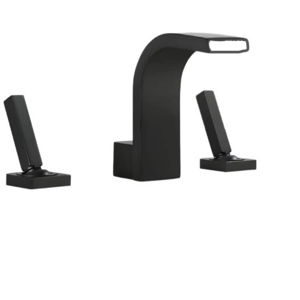 Envision a space where function meets design in the most sophisticated manner. This double handle bathroom faucet, with its striking black finish and geometric square lines, becomes an instant focal point. Pair it with a sleek, contemporary basin in white porcelain for a striking contrast. Its robust brass construction ensures it as a luxurious yet durable choice, seamlessly blending into both commercial and residential settings as a testament to refined taste.