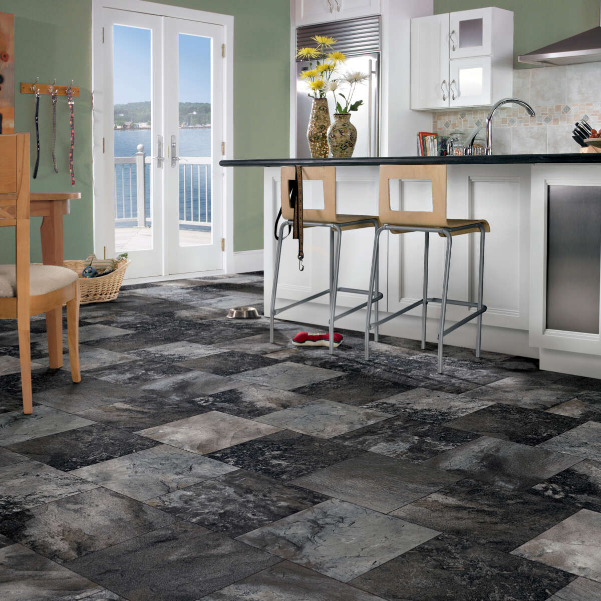 Enchanted Evening drapes the floor in smoky, dimensional stone that instantly grounds a room with refined drama. The richly layered pattern feels bespoke, while the soft low-gloss finish keeps it livable and chic. Pair it with matte black hardware and warm oak accents to create a balanced, modern kitchen. It’s a sophisticated foundation that elevates everyday luxury.
