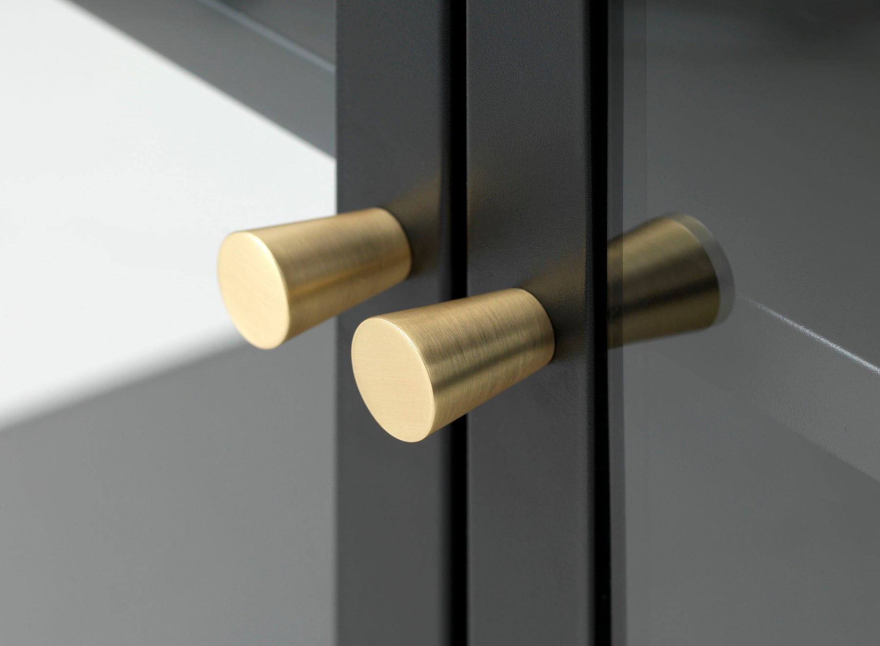 Elegant Finish: Matte black finish complemented by polished brass hardware.