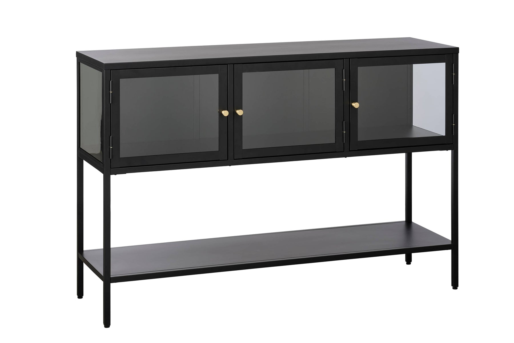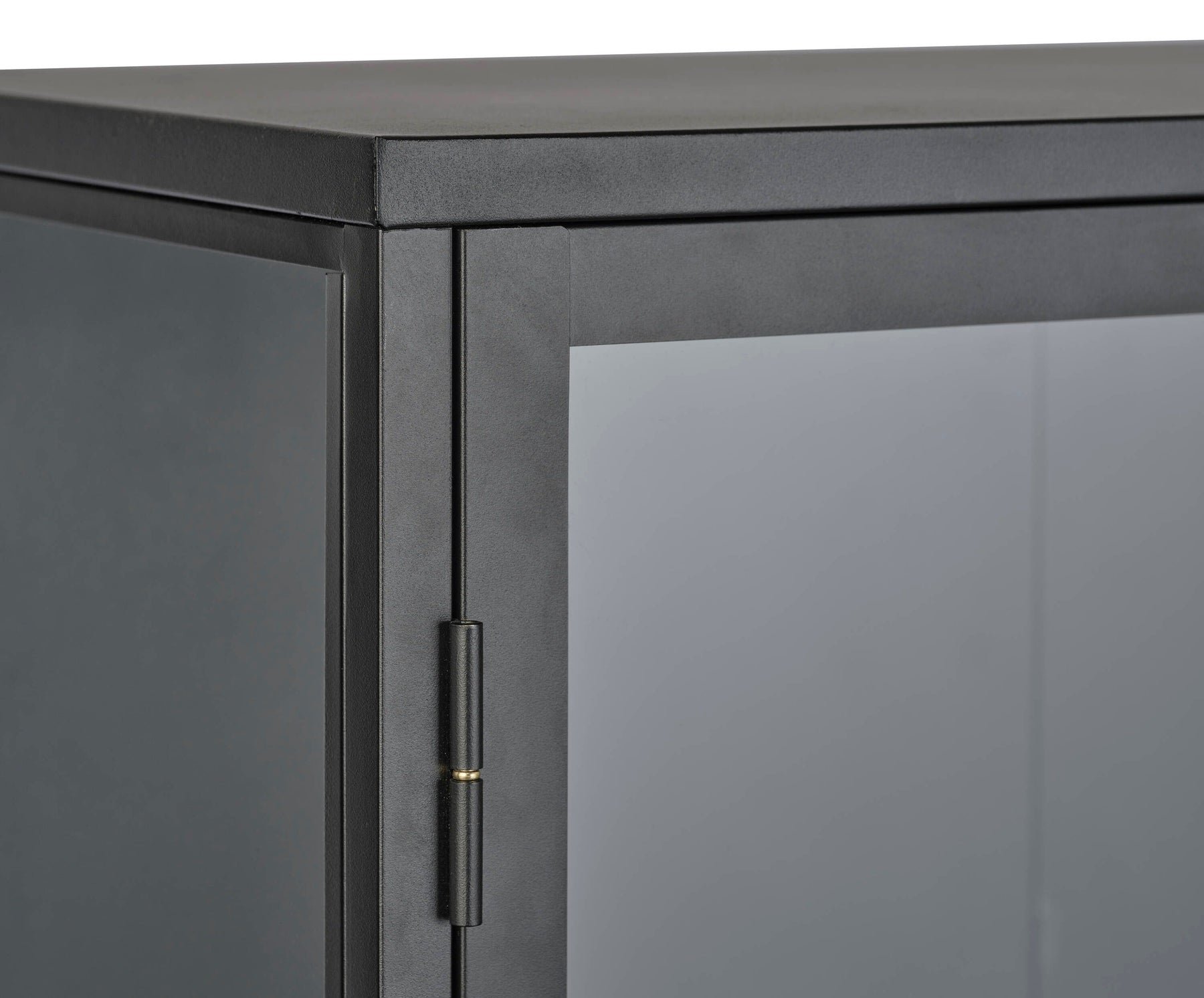 Experience a modern twist on functionality with this black metal sideboard, combining strength and chic style. Crafted from durable steel and glass, it offers ample storage and display space, making it an essential addition to any sophisticated space.