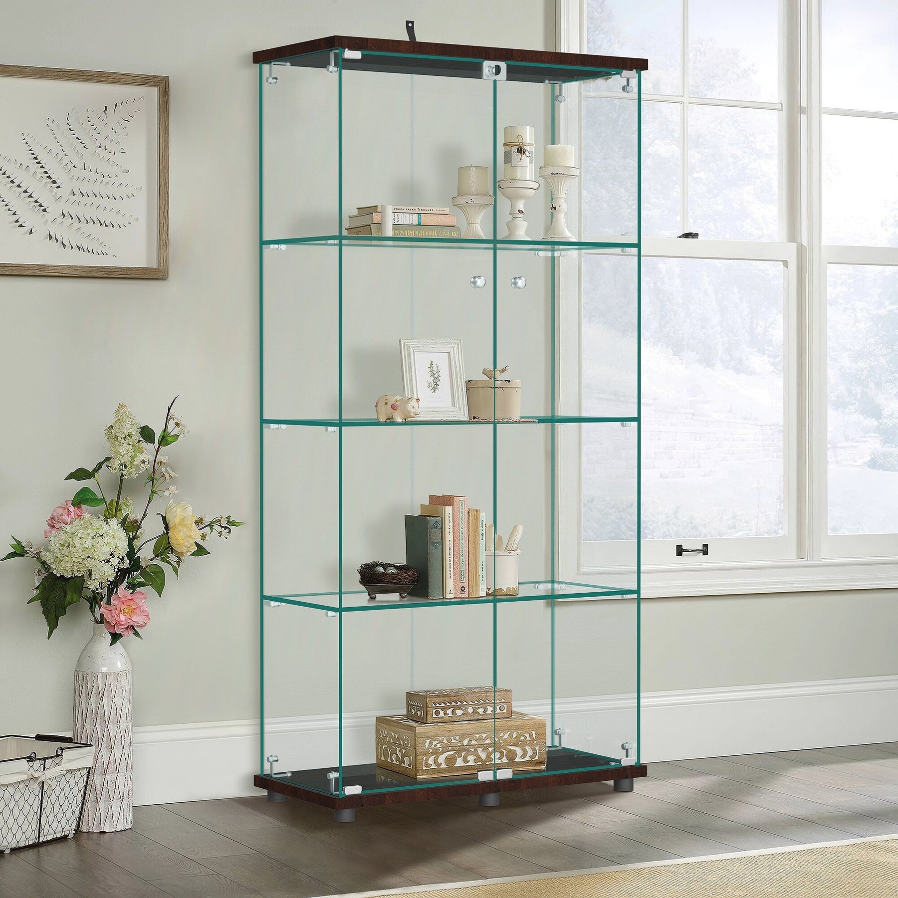 • Standing Storage: Four open front glass shelves provide convenient access while decluttering your space.