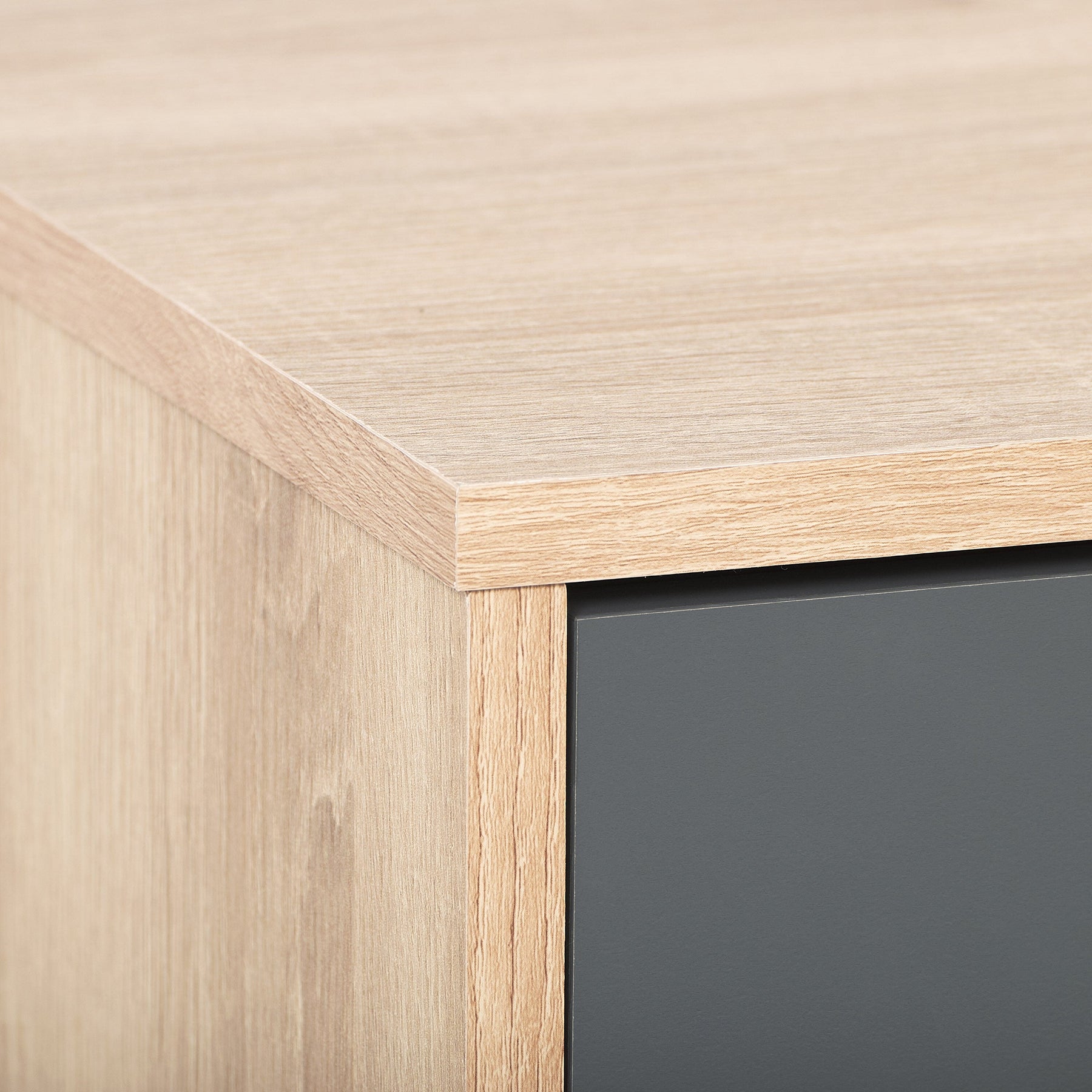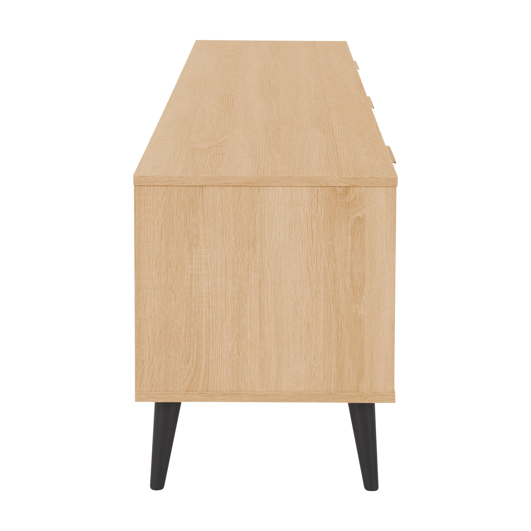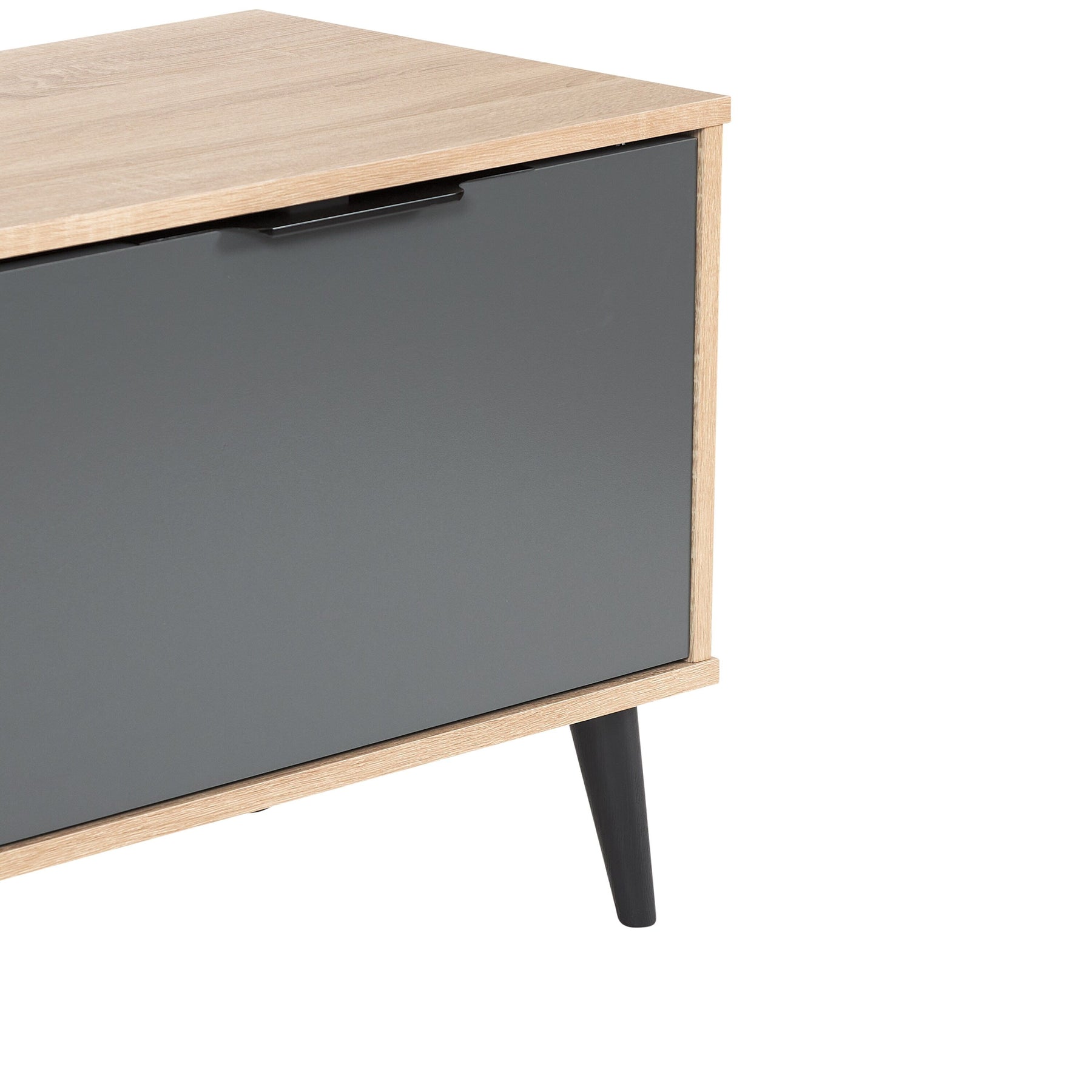 Transform your living area with the Cole TV Stand, where functionality meets effortless style. Its light woodgrain texture, contrasted against the subdued matte gray finish, introduces an air of sophistication, perfectly complementing both modern and transitional aesthetics. Pair it with minimalistic décor to enhance its sleek silhouette, making it the ideal centerpiece for a minimalist haven. Inculcating a blend of form and practicality, this piece is indispensable for those celebrating a lifestyle of understated luxury.