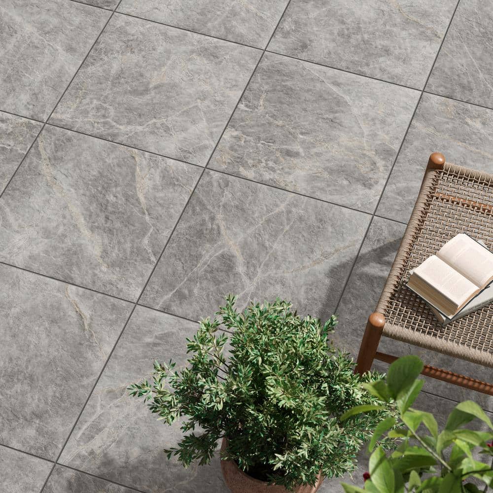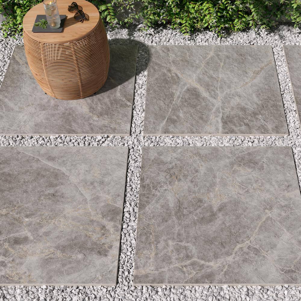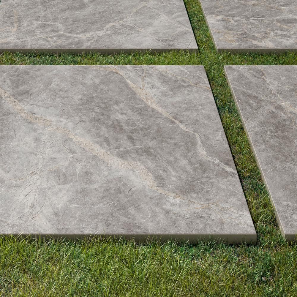 Durable porcelain pavers with a refined Tuscan gray marble-look bring luxury style to patios, walkways, and outdoor living spaces. Each 24x24 tile features a matte finish and 20mm thickness for strength and slip resistance in exterior applications.