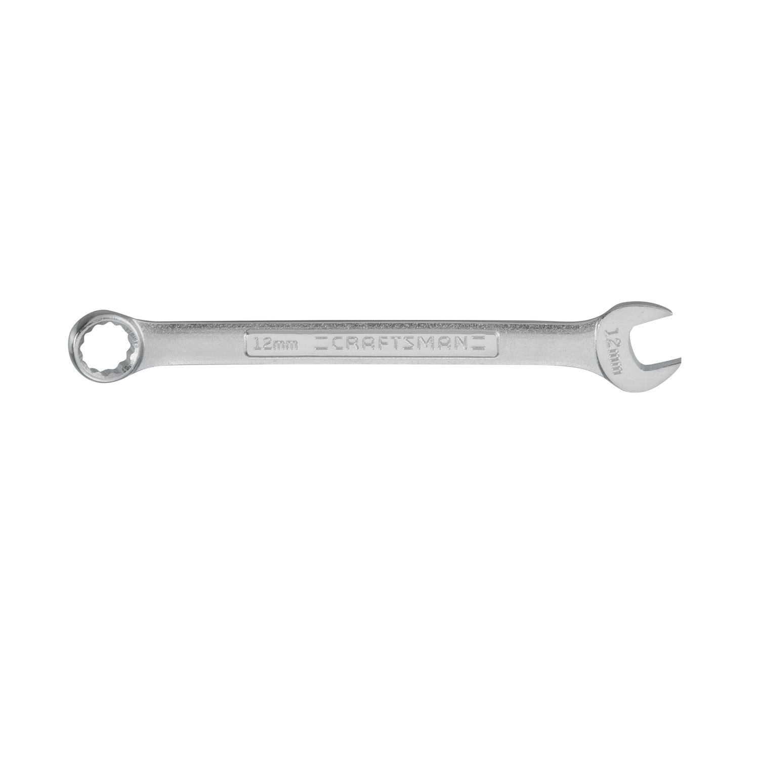 The Craftsman 12mm Metric Combination Wrench features a durable chrome finish for corrosion resistance and a 12-point box end for quick engagement with fasteners. Its compact 5.8-inch length and ergonomic design make it a reliable tool for any project.