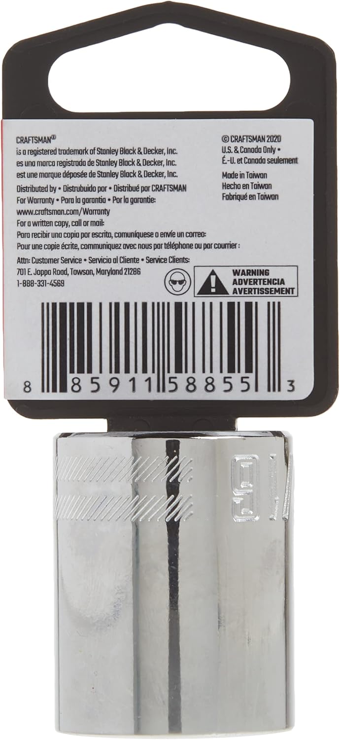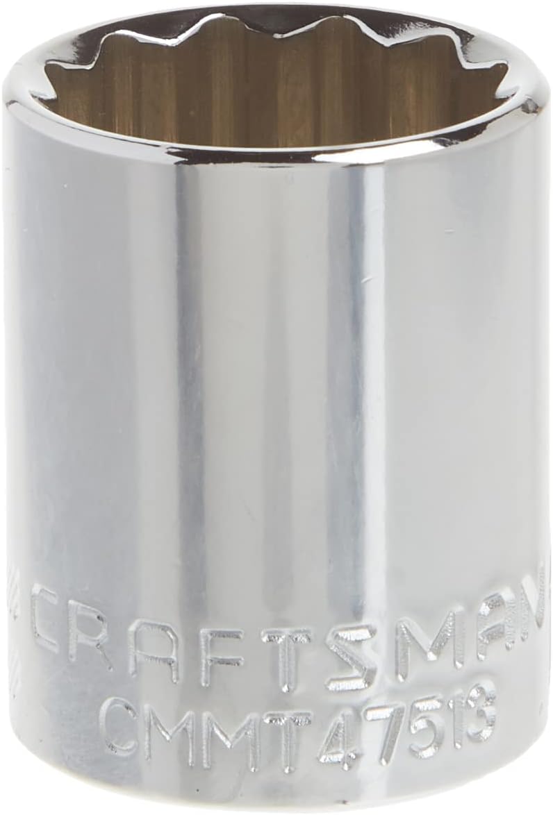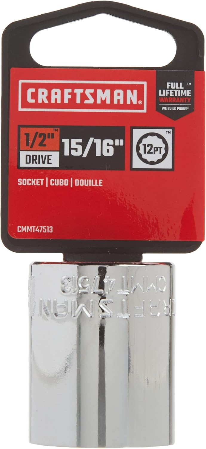 This Craftsman shallow socket delivers secure 12-point gripping for 15/16 in. SAE fasteners with a 1/2 in. drive. Built with a polished, corrosion-resistant finish and large size markings, it’s a durable, easy-to-read addition to any mechanic’s set.