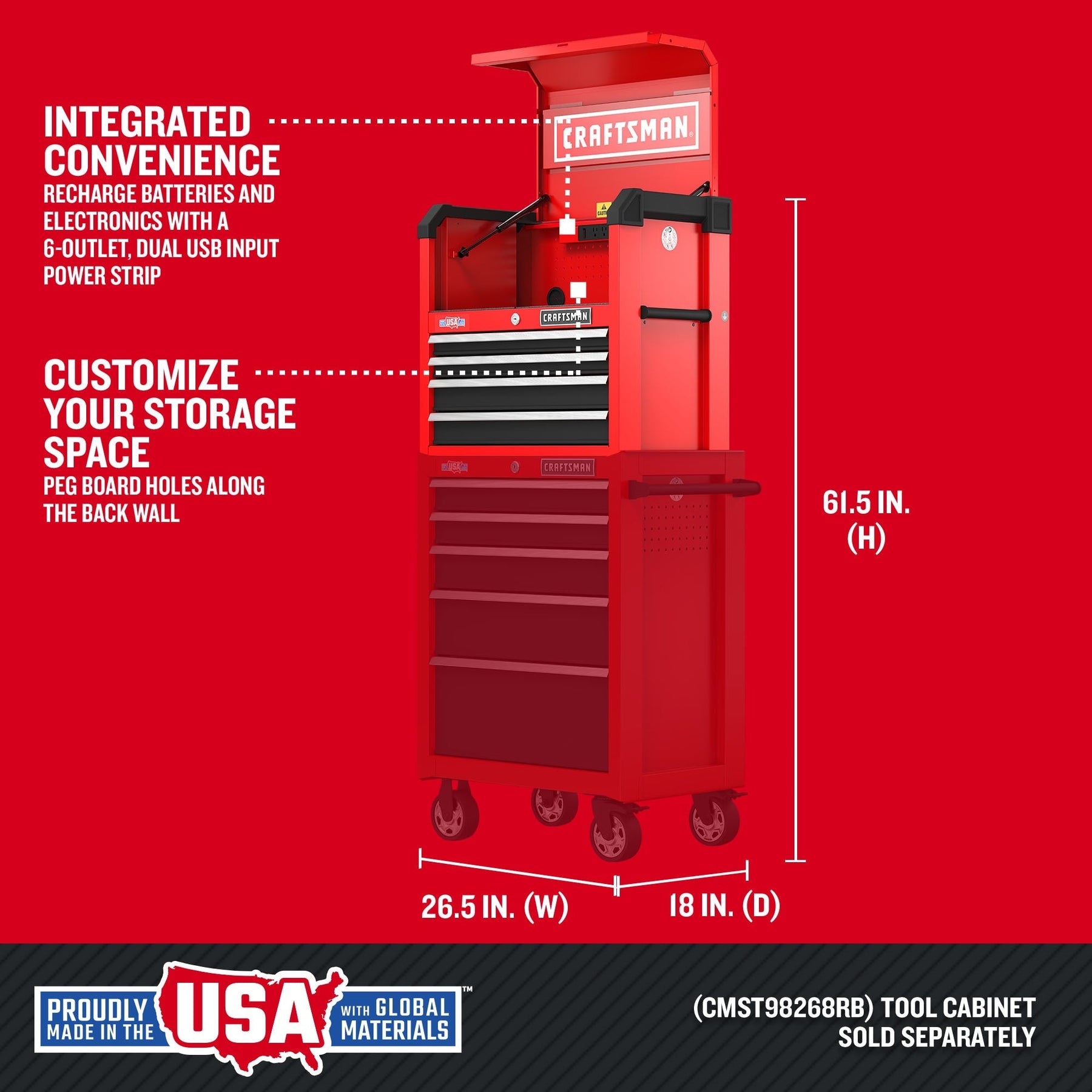The CRAFTSMAN 2000 Series 4-Drawer Tool Chest is a durable and spacious storage solution for your tools. Featuring a steel construction, soft-close drawers, and a built-in power strip, it combines functionality with convenience.
