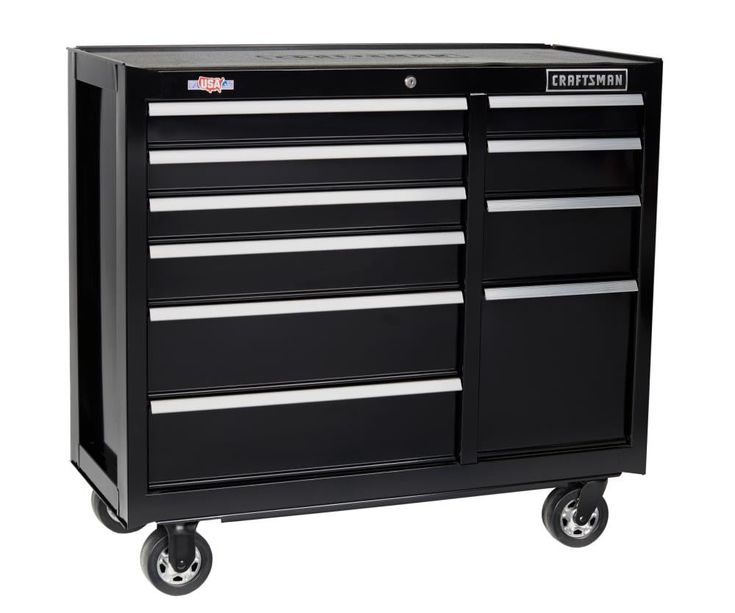 Experience top-notch organization and durability with the Craftsman 2000 Series 41-in W x 37.5-in H 10-Drawer Steel Rolling Tool Cabinet. With 10 drawers and a sturdy steel construction, this cabinet provides optimal storage for your tools while also being built to last. Keep your workspace clutter-free and your tools easily accessible with this expertly designed rolling cabinet.