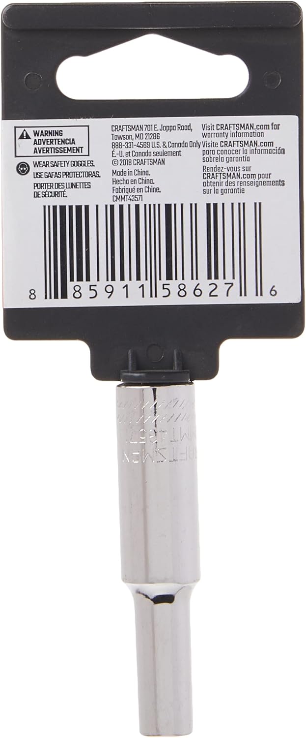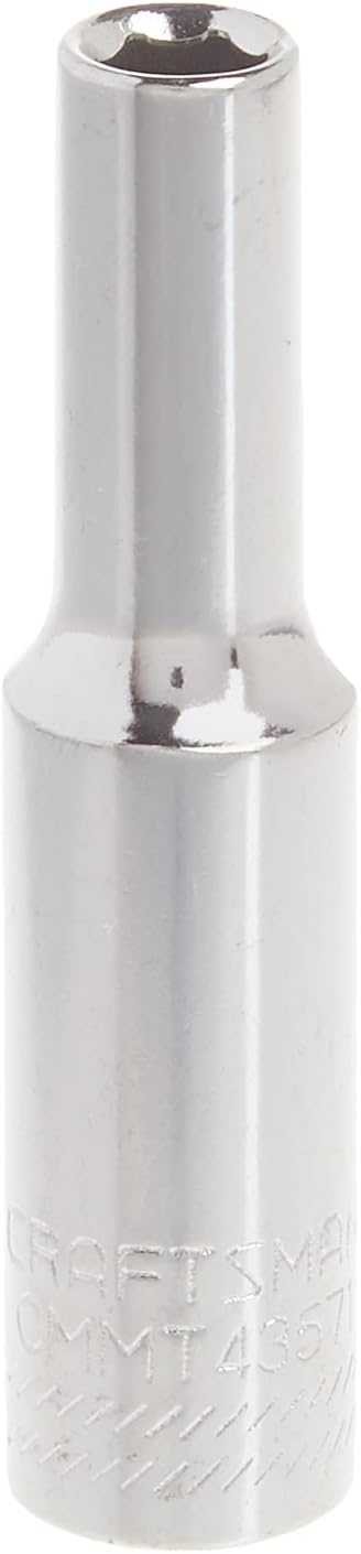 The Craftsman 3/16 in. SAE Deep Socket is a durable and reliable tool designed for precision and ease of use. Its polished chrome finish ensures corrosion resistance, while the 6-point design provides increased torque.