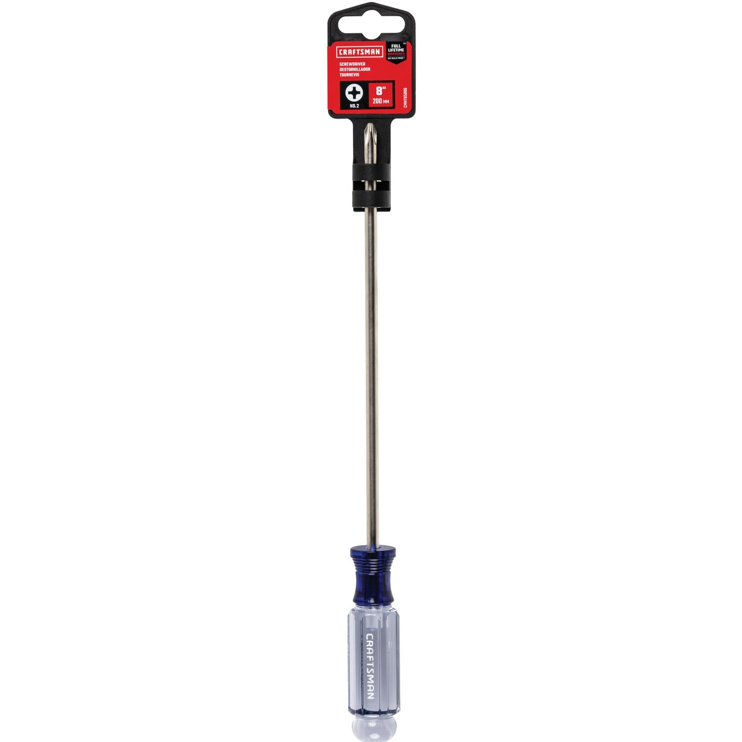 The Craftsman No. 2 Phillips Screwdriver features a durable alloy steel shaft and a comfortable acetate handle, making it ideal for high and low torque applications.