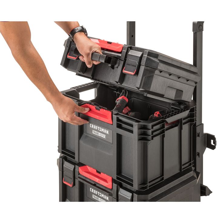 Expertly organize your tools with the Craftsman Tradestack System. Featuring a durable, lockable tool box with structural foam wheels, it offers easy transport and secure storage. Available in multiple colors/finishes, this system is built to last and keep you organized on the job.