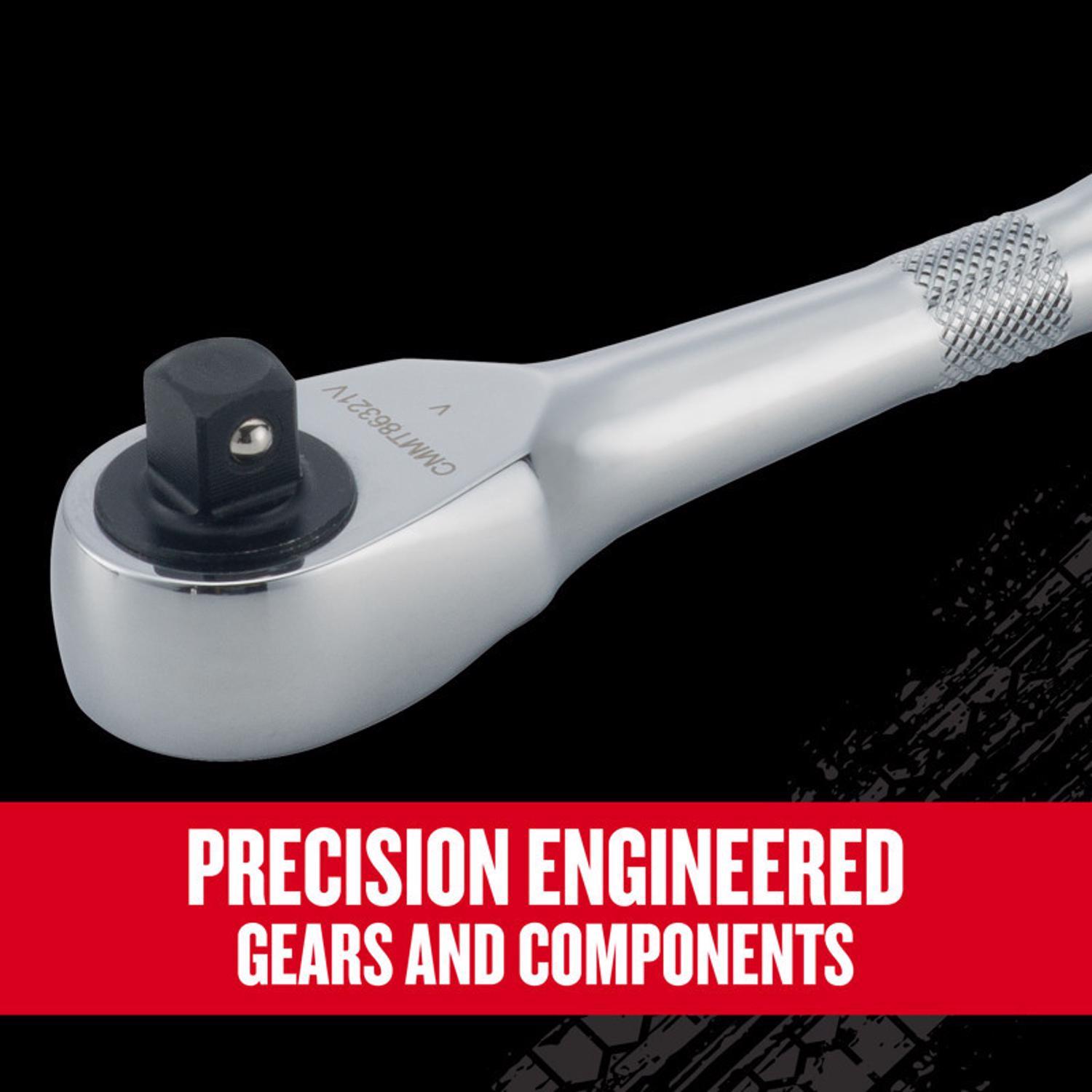 The Craftsman V-Series 3/8 in. Drive Ratchet is a high-performance tool designed for precision and durability. Featuring a 96-tooth design for a minimal arc swing, it is perfect for tight spaces.