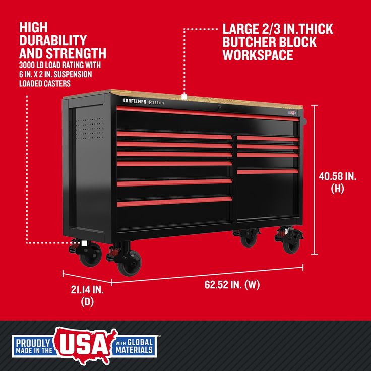 Maximize your workspace efficiency with the Craftsman V-Series rolling tool cabinet. With 11 drawers and a sturdy steel construction, you'll have plenty of space to organize and store your tools. Easily move your cabinet around with the smooth rolling wheels. Upgrade your workspace with this durable and functional tool cabinet.