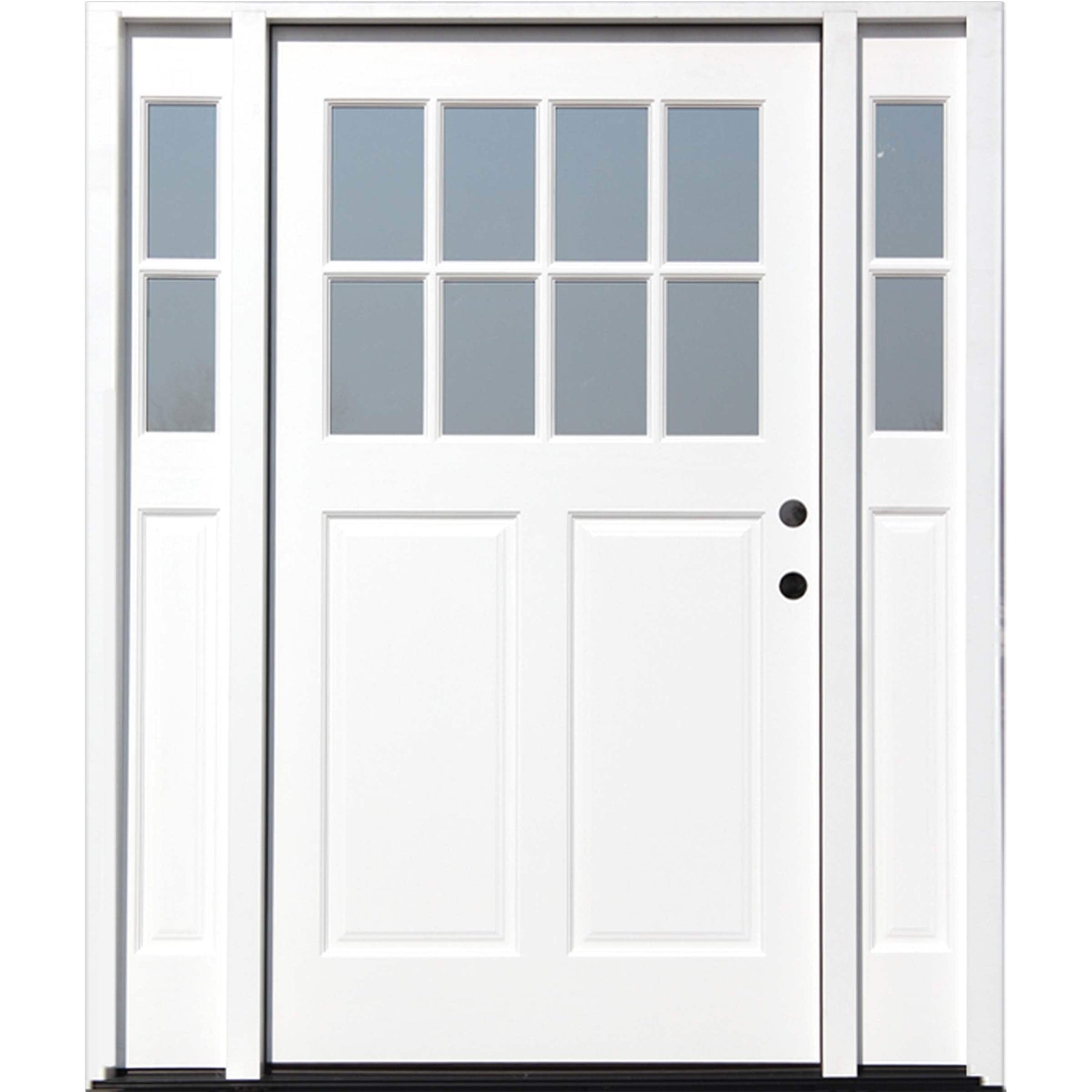 Creative Entryways Craftsman 2/3 Lite Painted Prehung Front Door with Sidelights and Brickmould