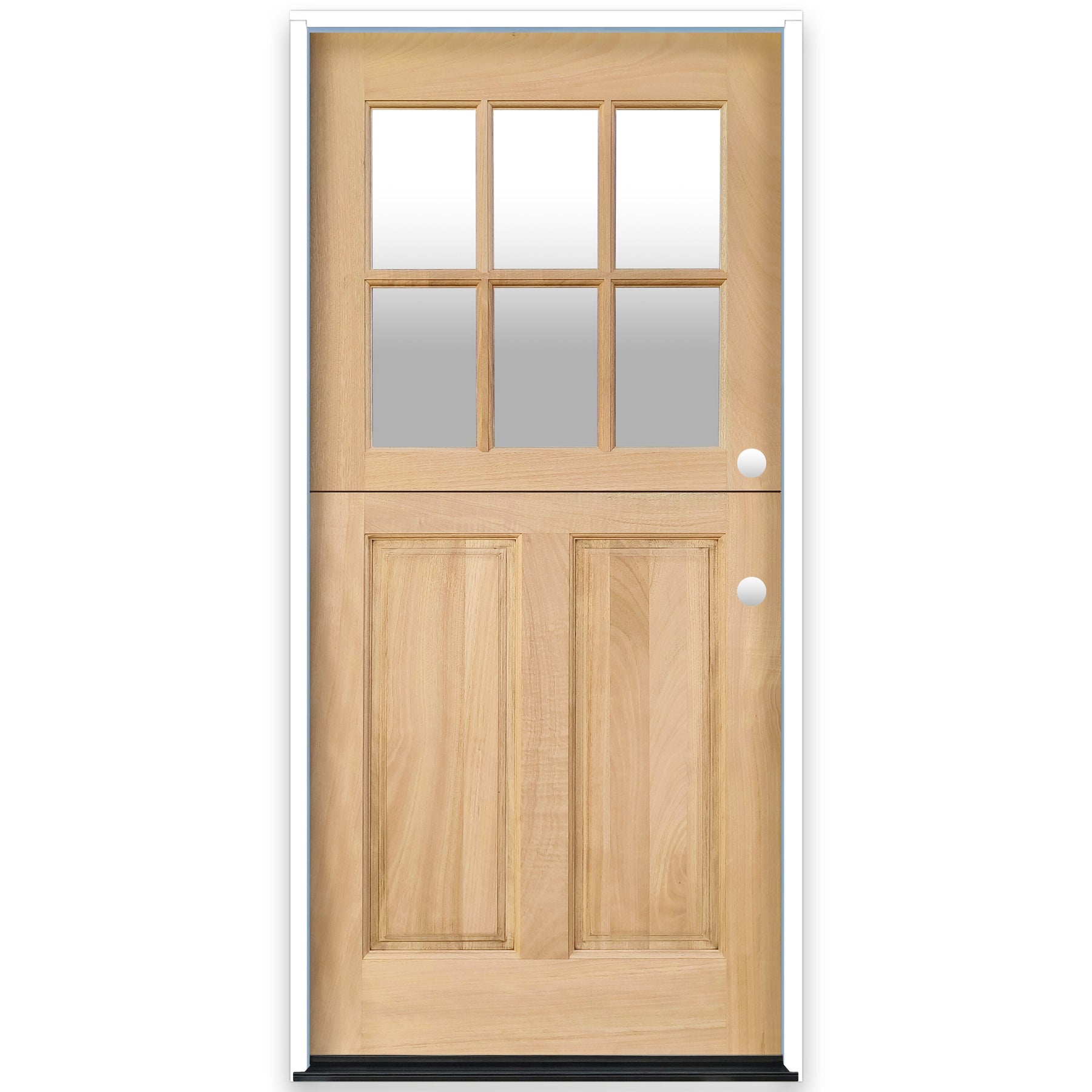 The Creative Entryways Mahogany Craftsman Dutch Front Door combines classic appeal with modern functionality. This elegant door features a solid hardwood core with clear dual-pane glass, ensuring durability and energy efficiency. Perfect for any home seeking a touch of rustic elegance, it's pre-hung for simple installation.