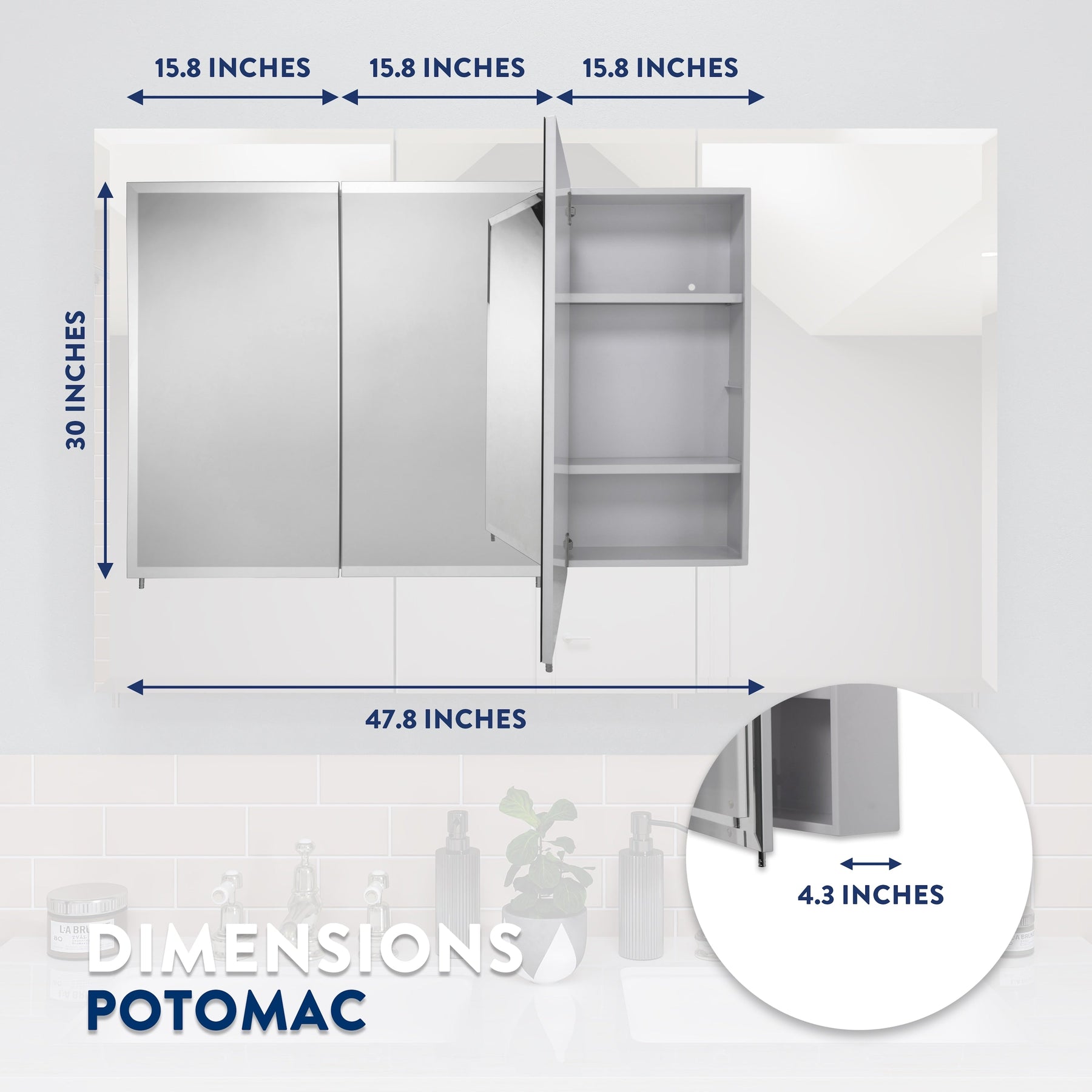 The Croydex 48-inch x 30-inch Surface Mount Satin White Mirrored Medicine Cabinet combines sleek design with practical storage. Featuring a satin white finish, this tri-view cabinet provides ample space and an expansive mirrored surface for your bathroom needs. Its robust steel construction ensures durability, while the easy-fit Hang 'N' Lock system simplifies installation.