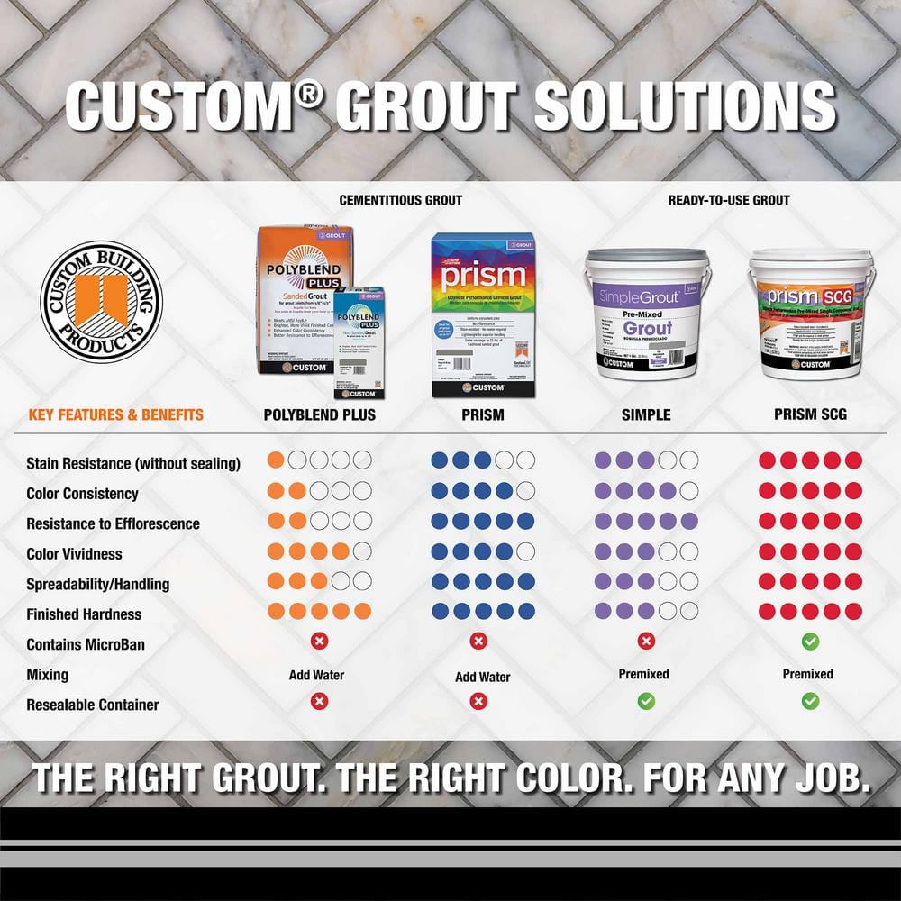 Q: Is this grout suitable for exterior applications? A: Yes, Prism SCG can be used for both interior and most exterior tile, glass, and natural stone installations.
