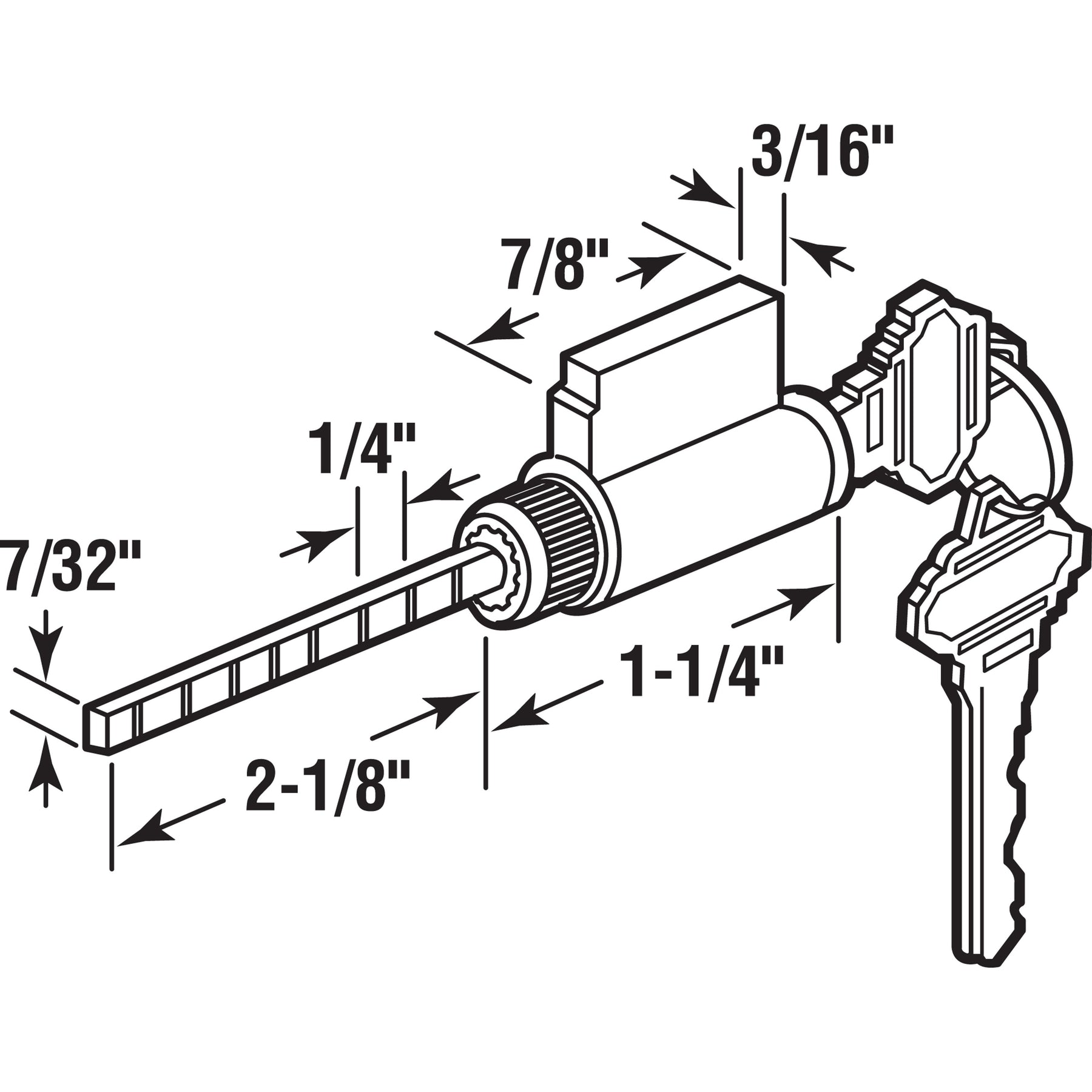 Compact 1-1/4-inch cylinder lock designed for retrofit security with Schlage-shaped keys. Solid construction suits door and hardware repairs where a keyed cylinder is required.