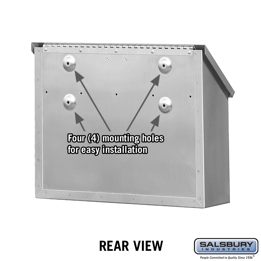 A: The mailbox is surface mounted and includes four mounting holes for easy installation.