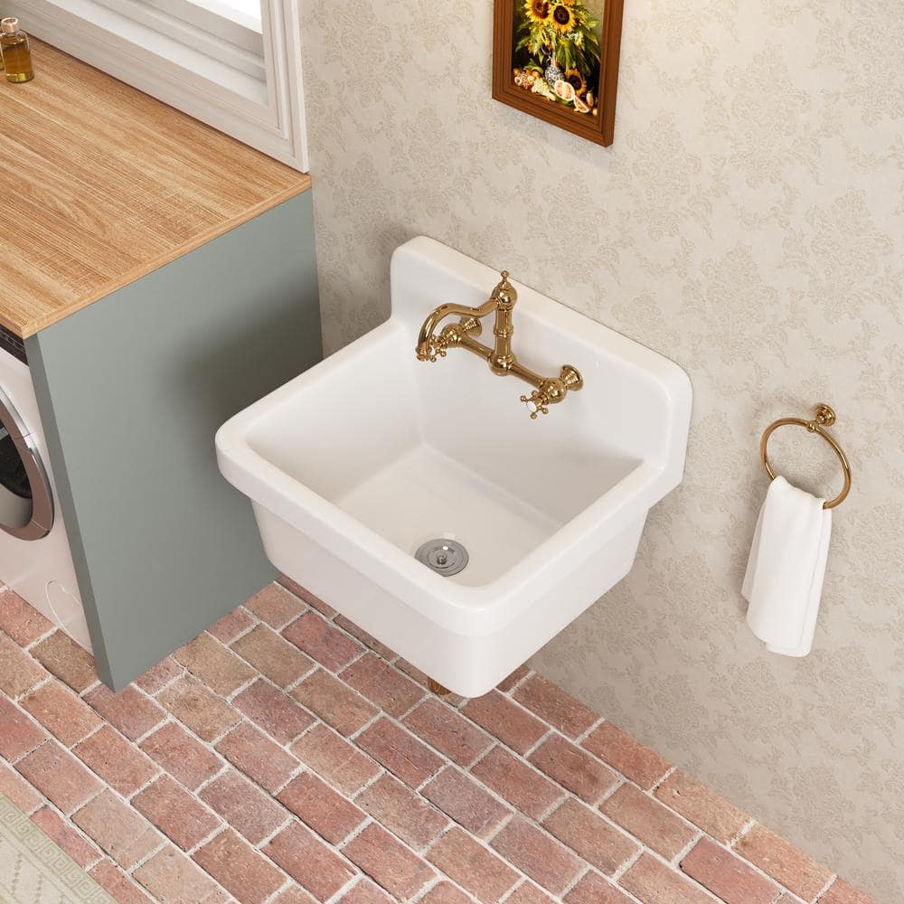 Elevate your laundry or utility space with the DEERVALLEY Ceramic Wall Mount Laundry Utility Sink. This elegant, durable sink features a space-saving wall mount design, perfect for tight areas. Its high backsplash and 8.86-inch deep basin provide splatter protection and ample space for various tasks, enhancing both form and function.