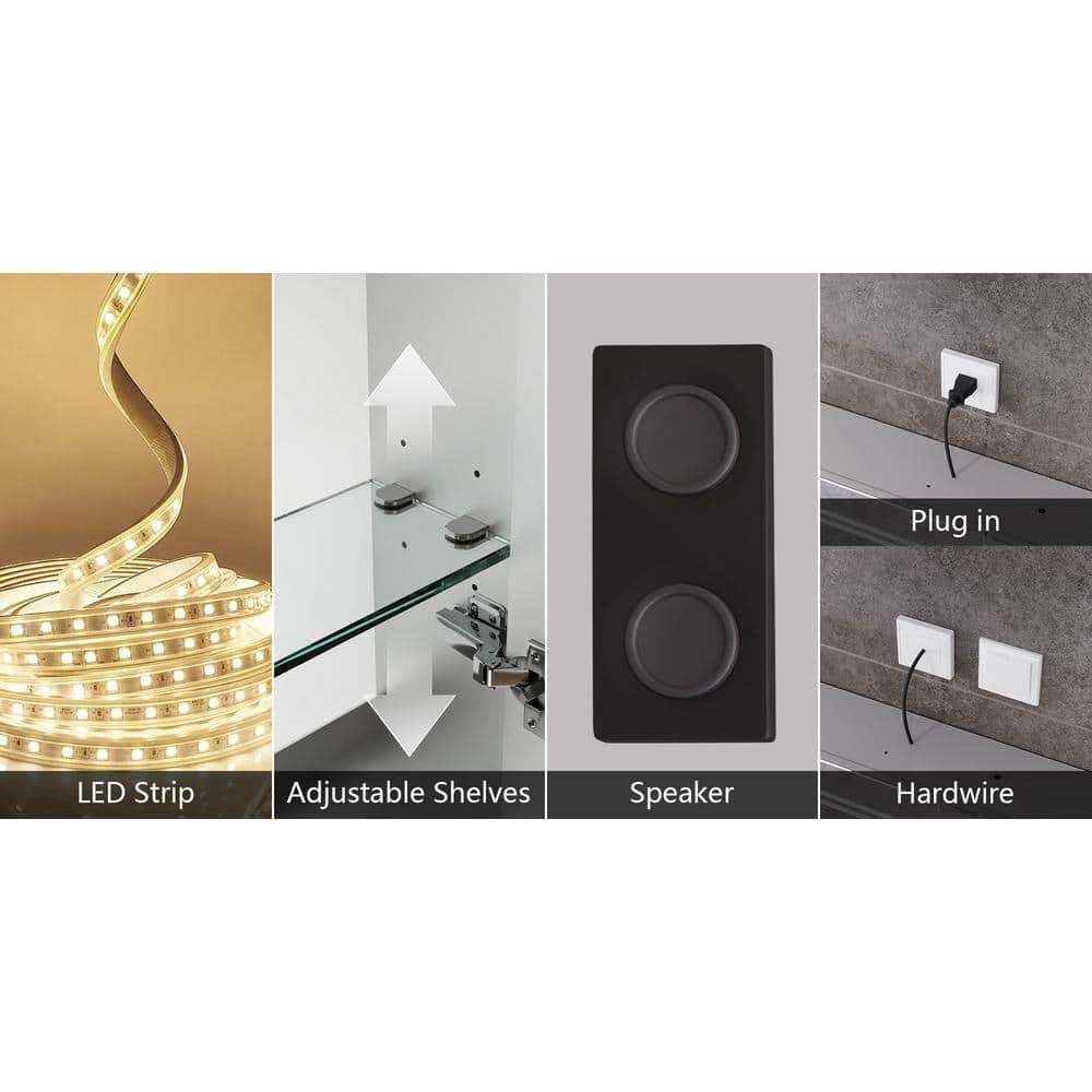 Enhance your bathroom experience with the DEERVALLEY LED Light Medicine Cabinet, featuring integrated lighting and anti-fog technology for a crystal-clear reflection in any setting. This stylish, wall-mounted cabinet combines luxury and functionality with built-in Bluetooth speakers and spacious, adjustable shelves.