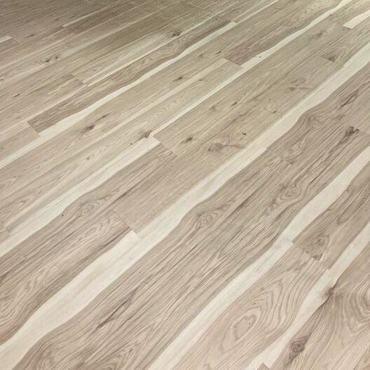 Experience the allure of antique design with our Defense+ Antique Linen Hickory Laminate Wood Flooring. Crafted with precision and care, each plank tells a story of rustic elegance that harks back to a bygone era. This laminate flooring not only transforms your space but also takes you on a journey through time. The intricate hickory grain patterns combined with the authentic weathered texture give your home a touch of nostalgia that never goes out of style.