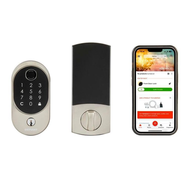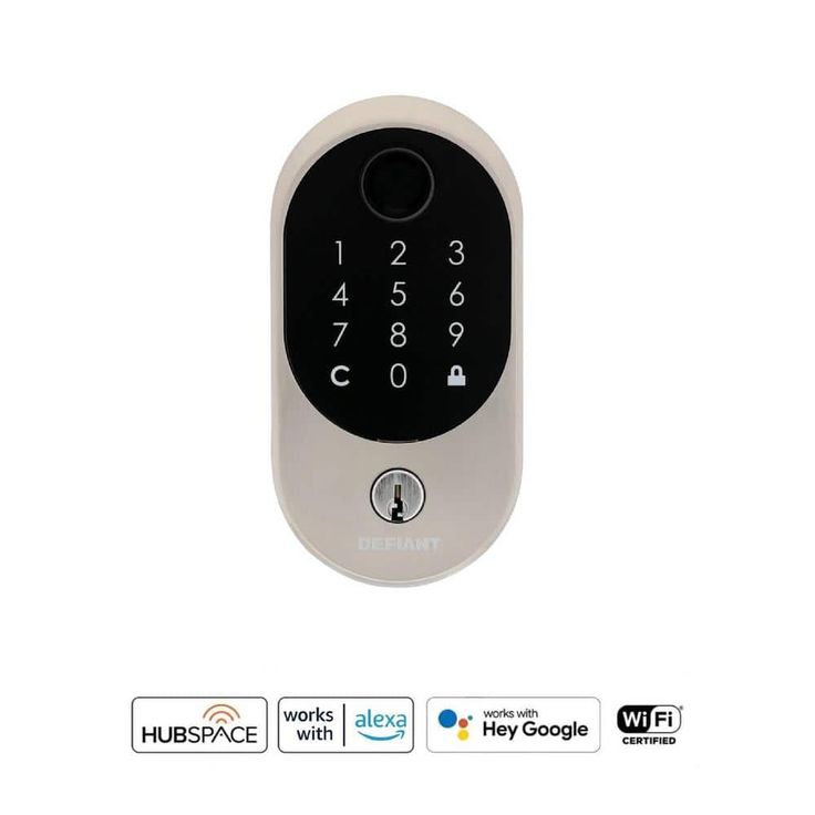 Enhance your home security with the Defiant Hubspace Biometric Fingerprint Electronic Deadbolt. This Wi-Fi enabled lock offers multiple ways to access your home, including fingerprint recognition, touchpad, and traditional keys, all controlled by the Hubspace app. Designed with sleek satin nickel finish, this deadbolt allows for easy installation and fits most standard doors without the need for hardwiring.