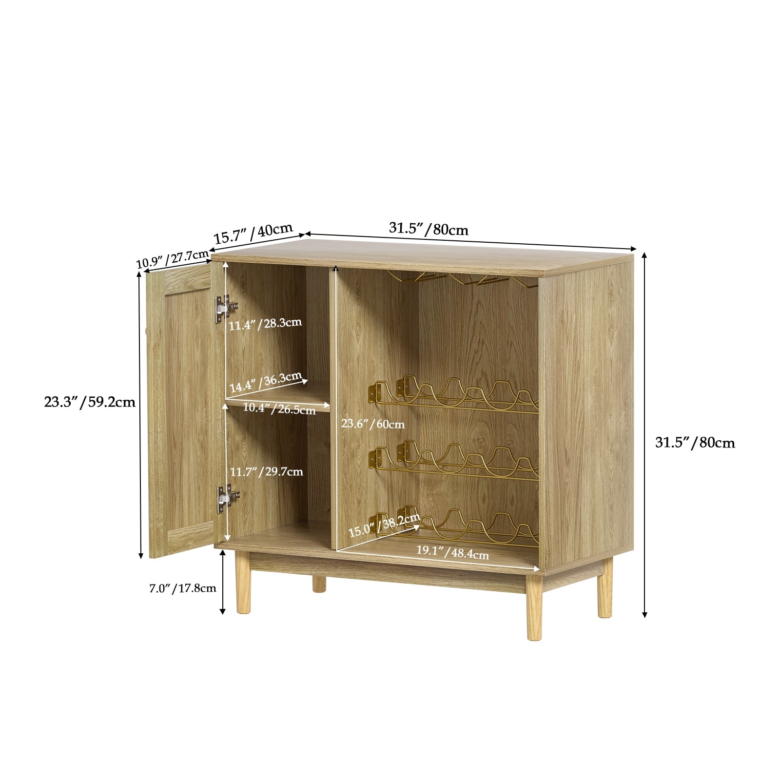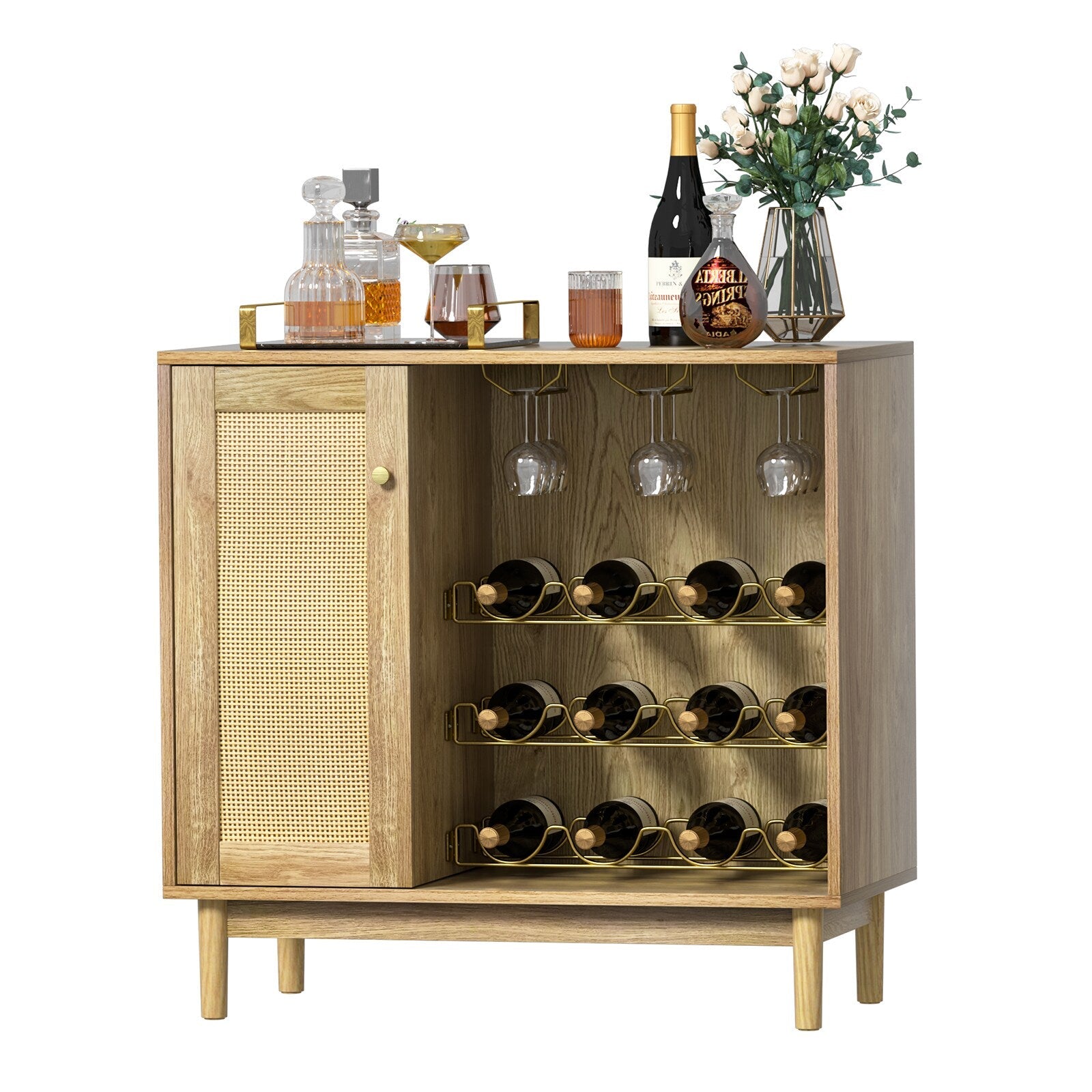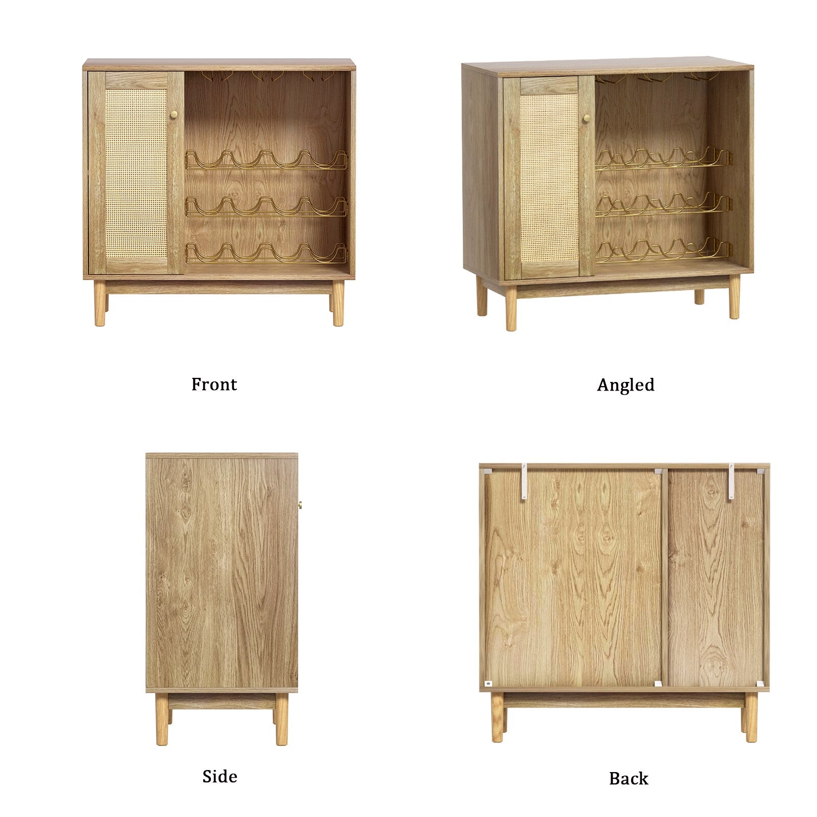 Enhance your dining area with the Delarpo Oak Wood Wine Cabinet, a perfect blend of rustic charm and modern functionality. Built with particle board, solid wood legs, and natural rattan, this cabinet accommodates 12 wine bottles and offers ample storage for stemware and dining essentials. Its oak finish beautifully complements any farmhouse or mid-century modern décor.