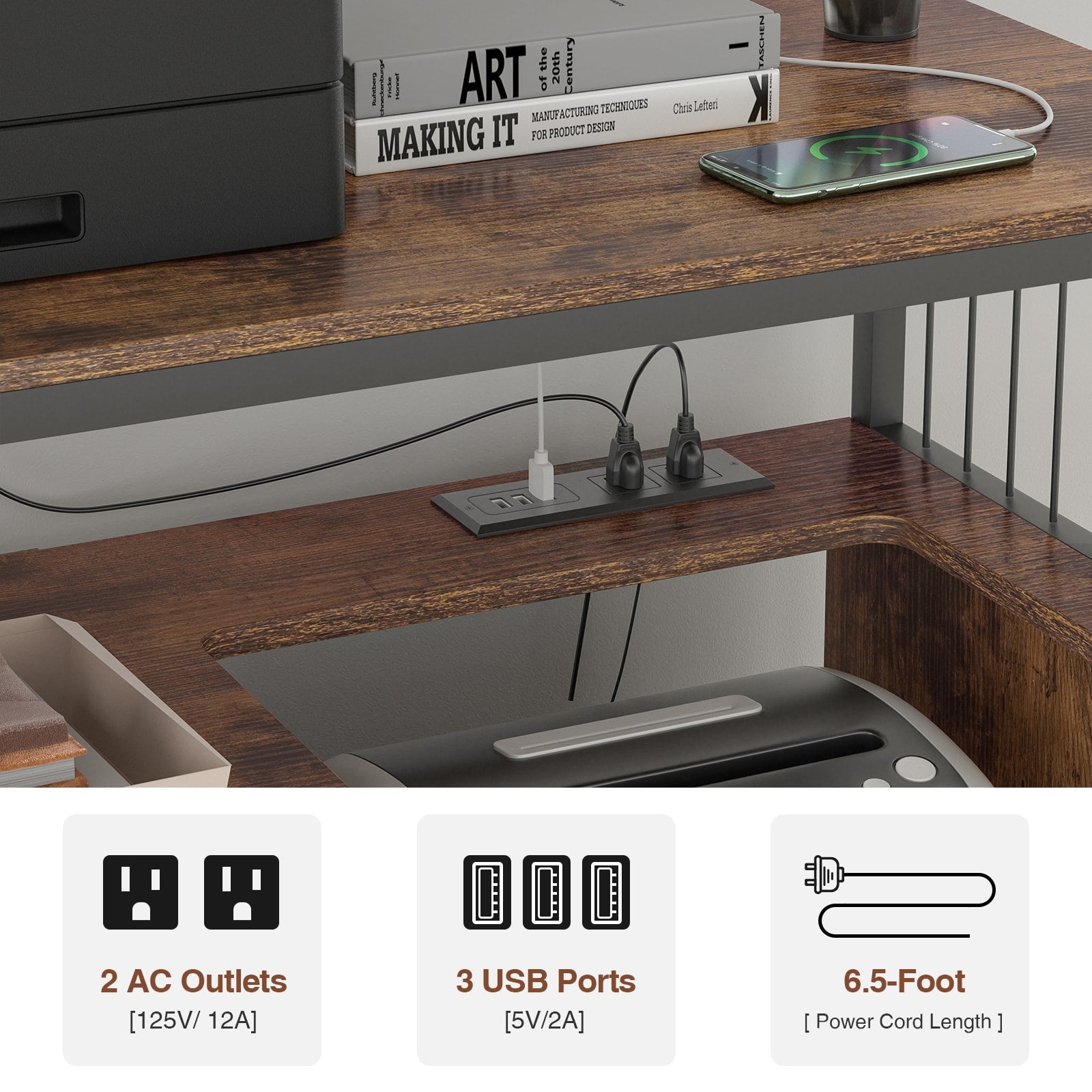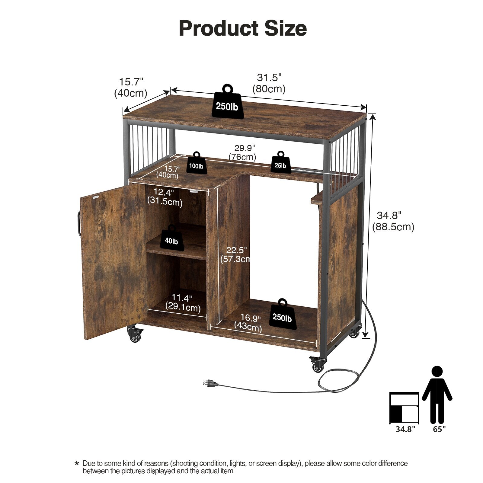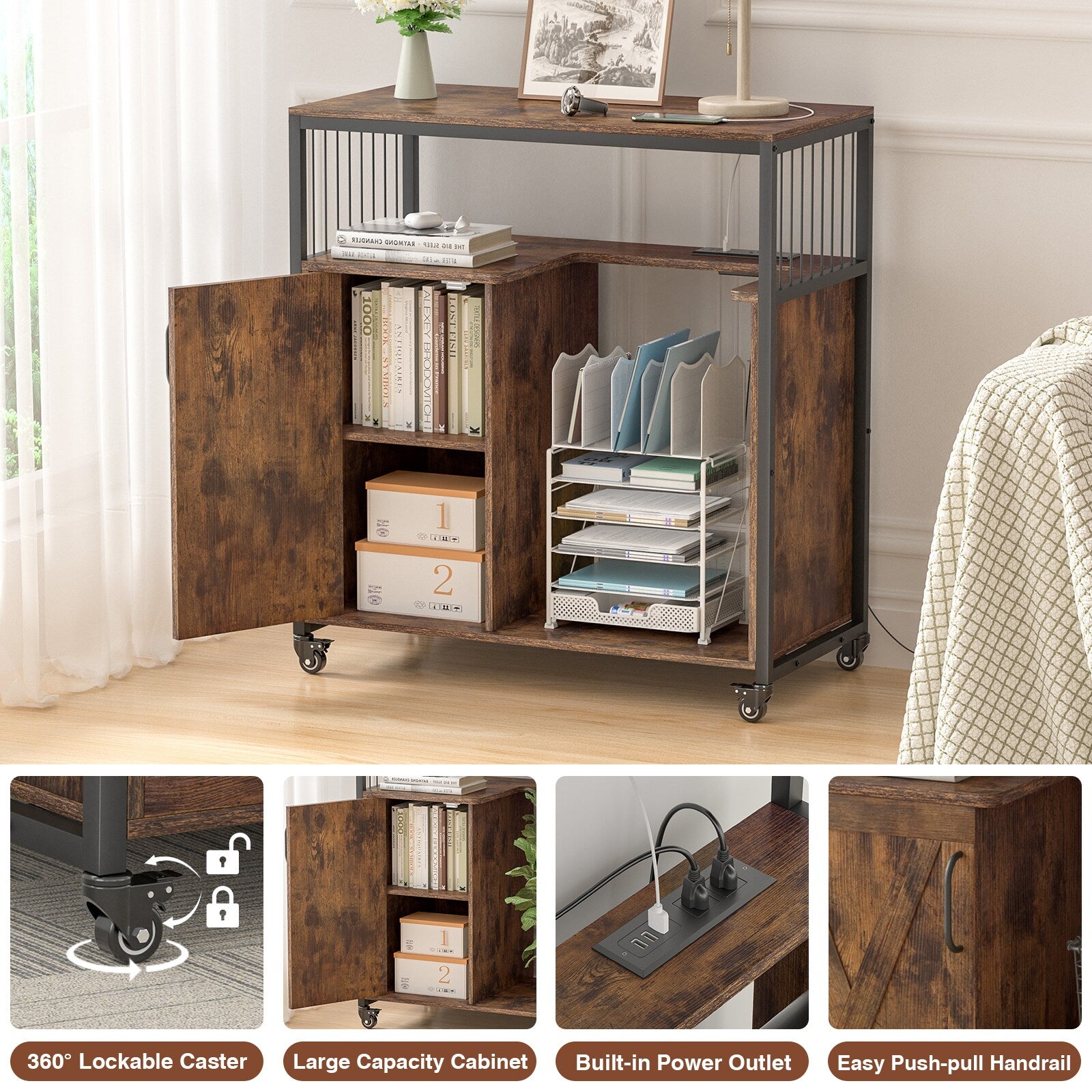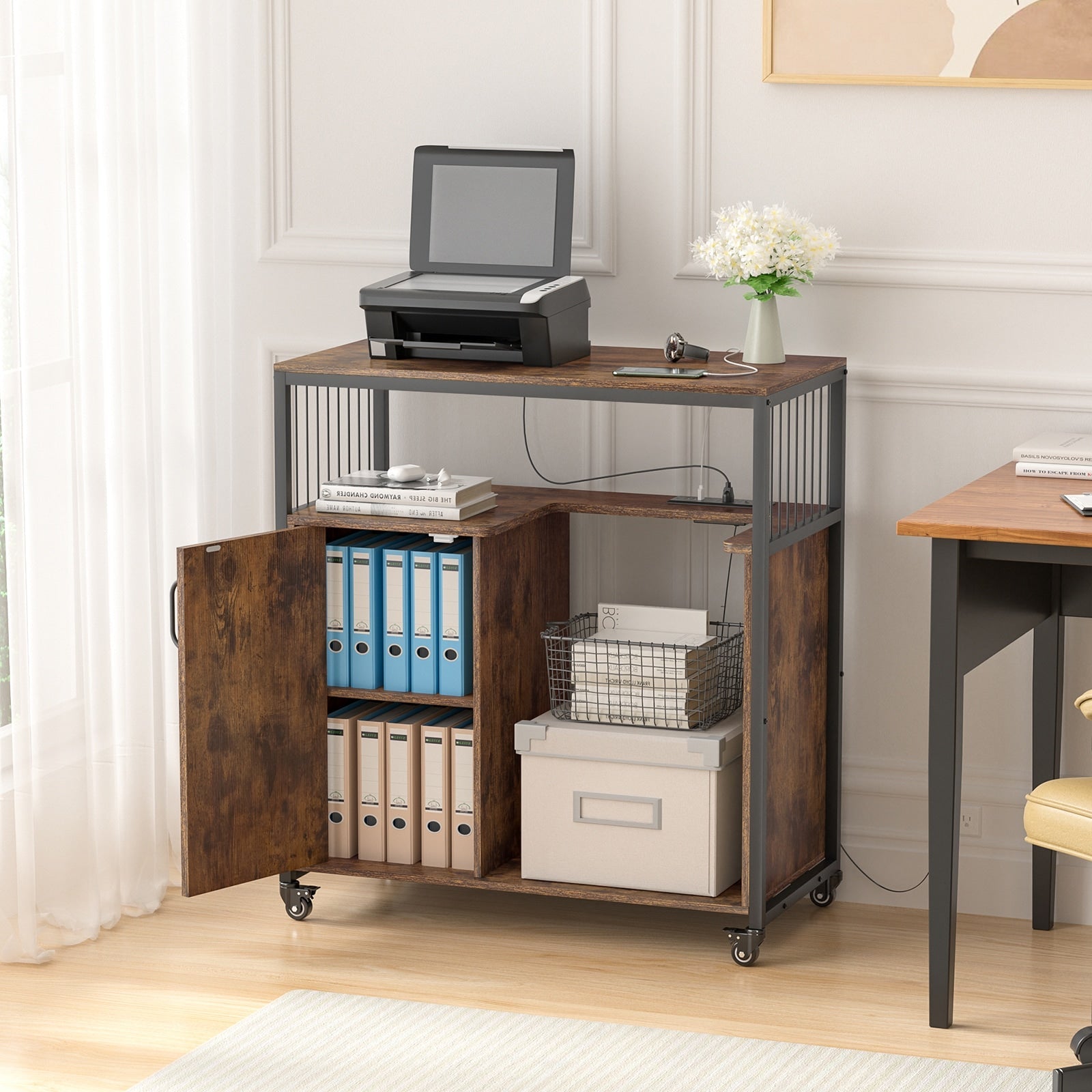 Elevate your office with the Delarpo Rustic Brown Printer Stand, featuring a vintage industrial aesthetic and smart functionality. Equipped with built-in power outlets and USB ports, this stand offers seamless charging for all your devices. The large cabinet with an adjustable shelf provides ample, organized storage space, making it an ideal choice for both professional and home offices.