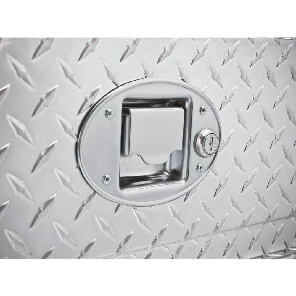 The diamond-plate sheen brings a utilitarian glamour to the truck bed, catching light like a facet-cut jewel. Its dual mid-lids are a precise, architectural gesture, offering swift access while maintaining a streamlined silhouette. Style it with matte black accessories and rugged gear for a composed, professional look on the jobsite. This is functional luxury—orderly, resilient, and undeniably essential.