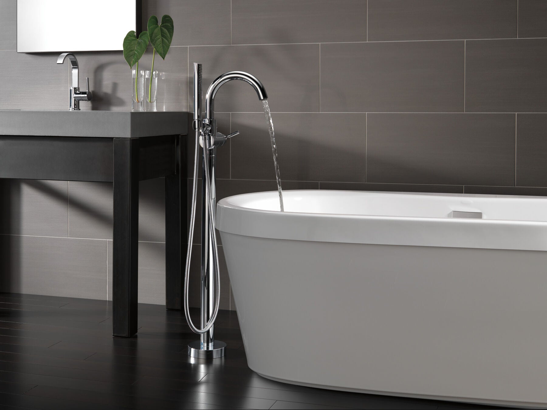 Unwind in the Delta Synergy freestanding soaking bathtub, designed with contoured sides and a deep 16 in. soak for full-body comfort. Lightweight, durable acrylic with an integrated overflow and toe-tap drain streamlines installation and cleaning while delivering a sleek, modern look.