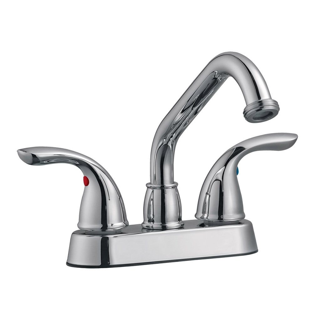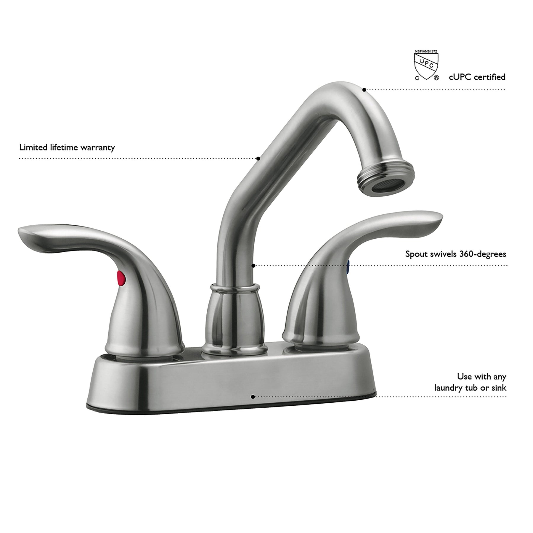 Q: What is the flow rate of this faucet? A: The faucet has a flow rate of 2.4 gallons per minute, ideal for both residential utility and laundry room use.