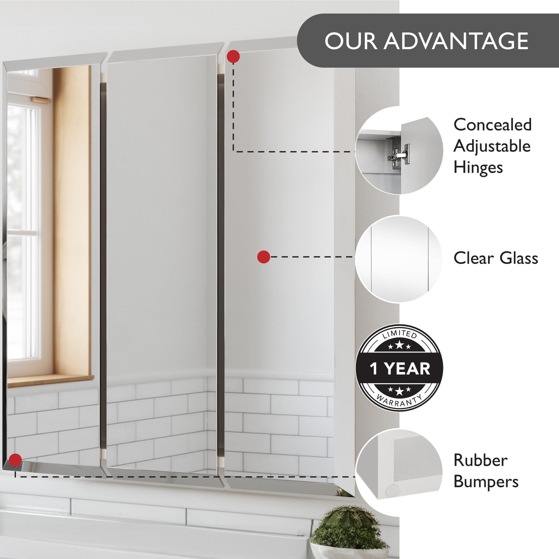 • Design: Frameless tri-view mirrored doors for an elegant look and multiple viewing angles.