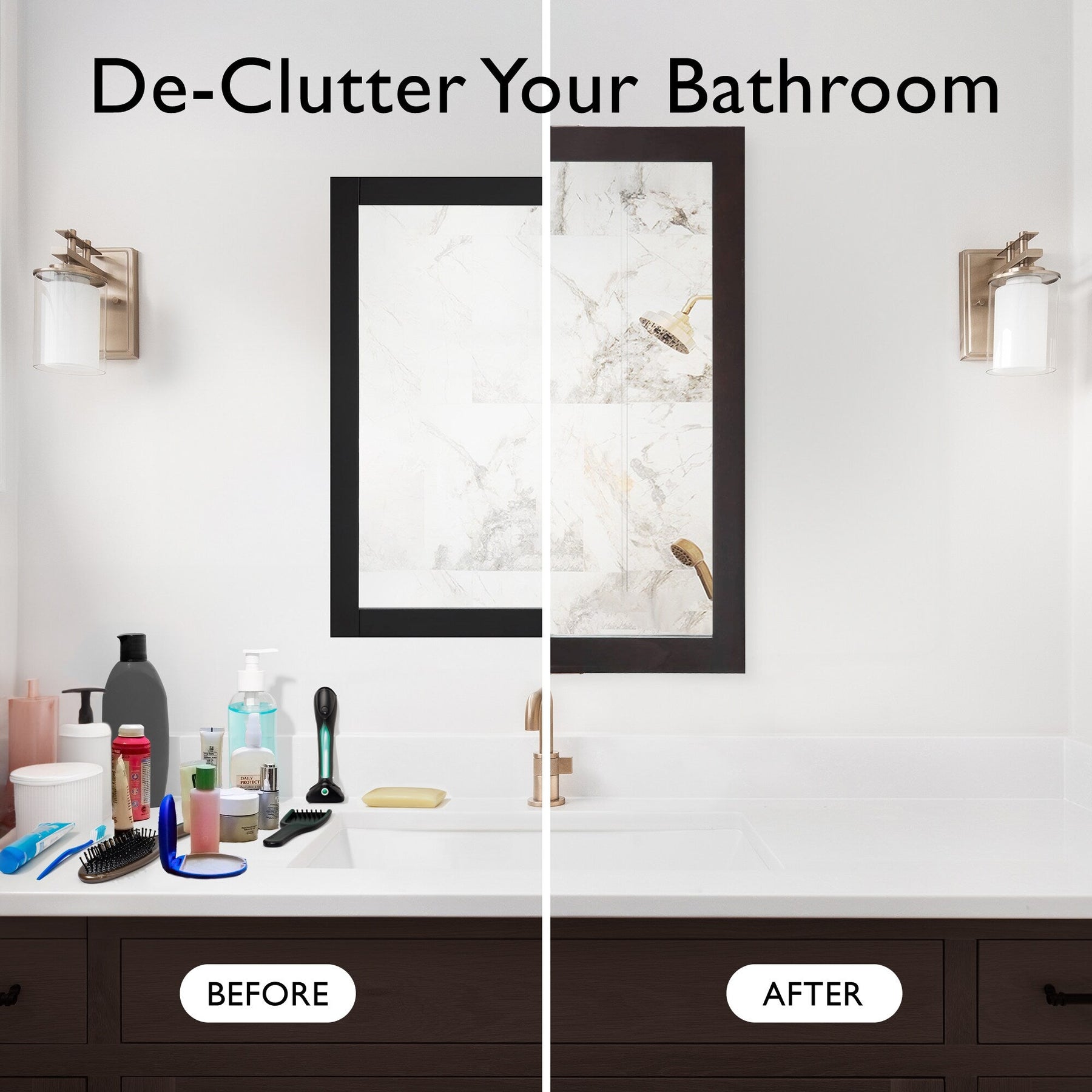 Transform your bathroom sanctuary with the spare elegance of the Design House Ventura Medicine Cabinet. Crafted with an exquisite espresso finish, the dual mirrored doors introduce a sense of modern luxury that elevates any décor. Use this cabinet to reflect the light in a cozy space, creating the illusion of depth and spaciousness. Essential for a polished, de-cluttered environment, it is the perfect fusion of functionality and chic design.
