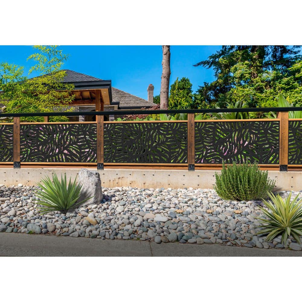 Imagine a serene, tropical retreat with DESIGN VU’s Bahama Panel as your backdrop. This striking charcoal screen panel isn't just a barrier; it's a statement of artful living. The open palm design beckons a playful dance of light and shadow, effortlessly transforming any environment into an exotic getaway. Whether elegantly framing a patio garden or as a chic accent inside your home, this panel exudes sophistication and tranquility, making it an undeniable component of luxurious outdoor spaces.
