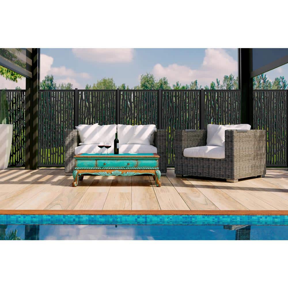 Transform your outdoor space with the DESIGN VU Bali 6 ft. x 3 ft. Charcoal Recycled Polymer Decorative Screen Panel. This eco-friendly panel, made from 100% recycled polymer, offers a stylish and versatile solution for privacy and decorative applications. The panel's elegant design and durable construction make it perfect for outdoor use, providing both functionality and aesthetic appeal.