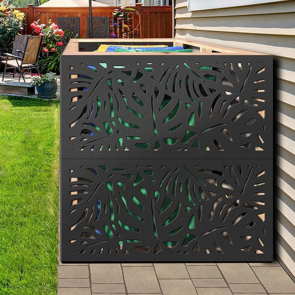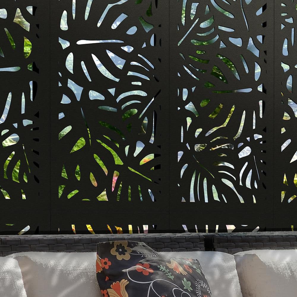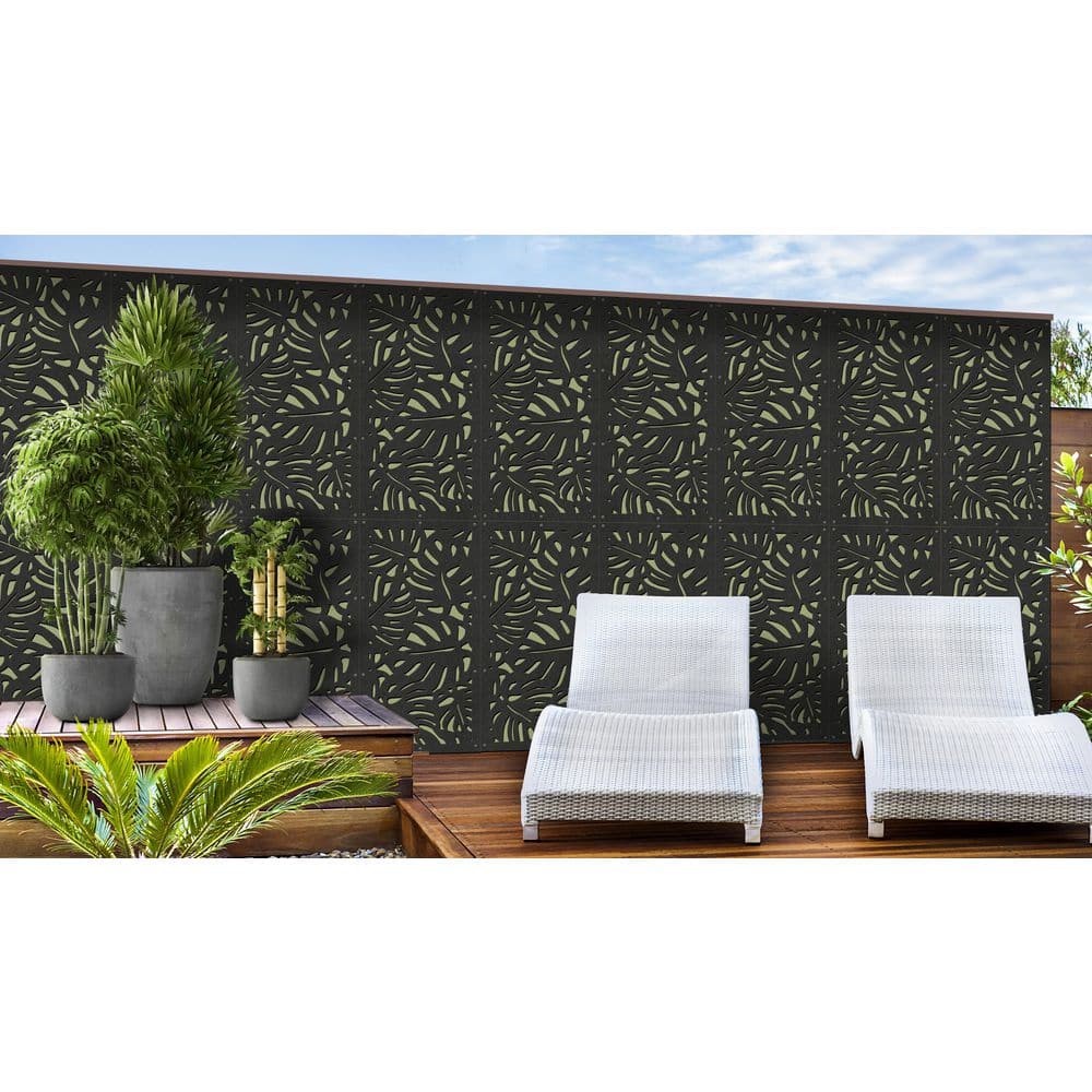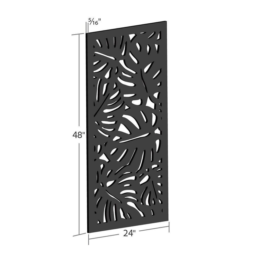 Transform any space with the DESIGN VU Tropics 4 ft. x 2 ft. Charcoal Decorative Screen Panel. Made from 100% recycled polymers, this panel beautifully balances lush, tropical aesthetics with functional privacy screening, making it an eco-friendly addition to both indoor and outdoor designs.
