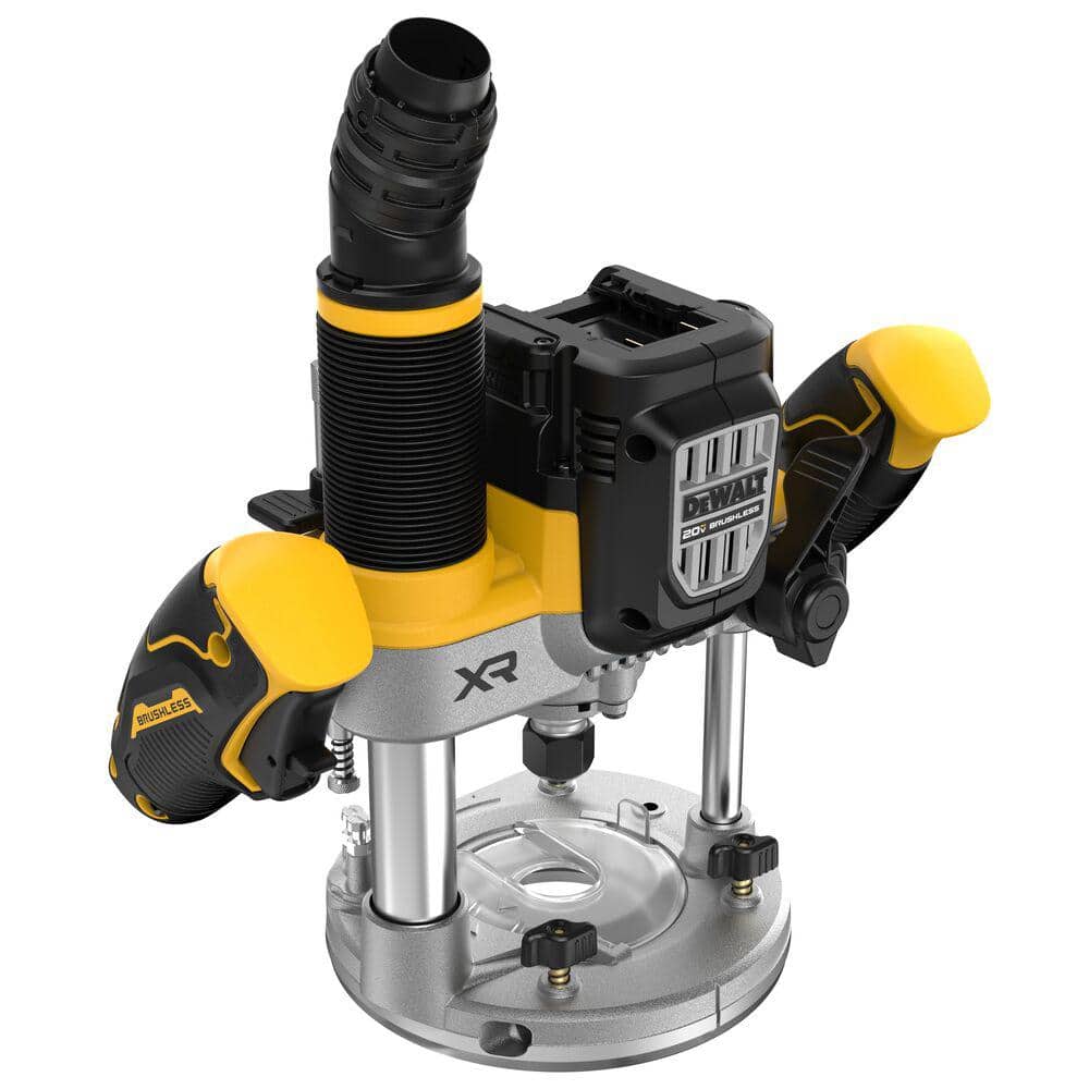 Experience unmatched precision with the DEWALT 20V MAX XR Brushless Cordless Plunge Router. Designed for the professional, this tool effortlessly handles detailed edgework and plunge tasks with its robust 2-1/4 peak HP brushless motor. Enjoy cordless freedom, advanced user control, and a clean workspace with the integrated dust collection system.