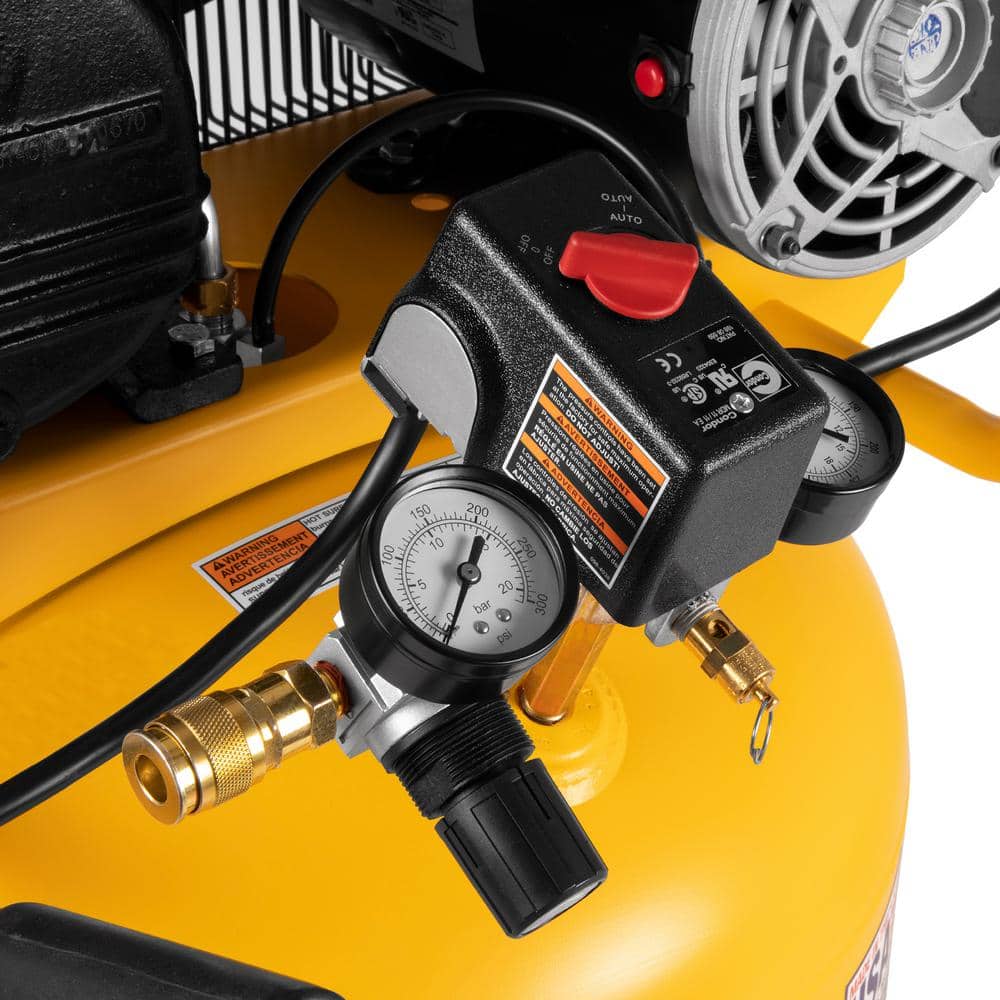 • Ease of Use: Fully assembled with tank and working pressure gauges, a quick connect air outlet, and on/off switch.