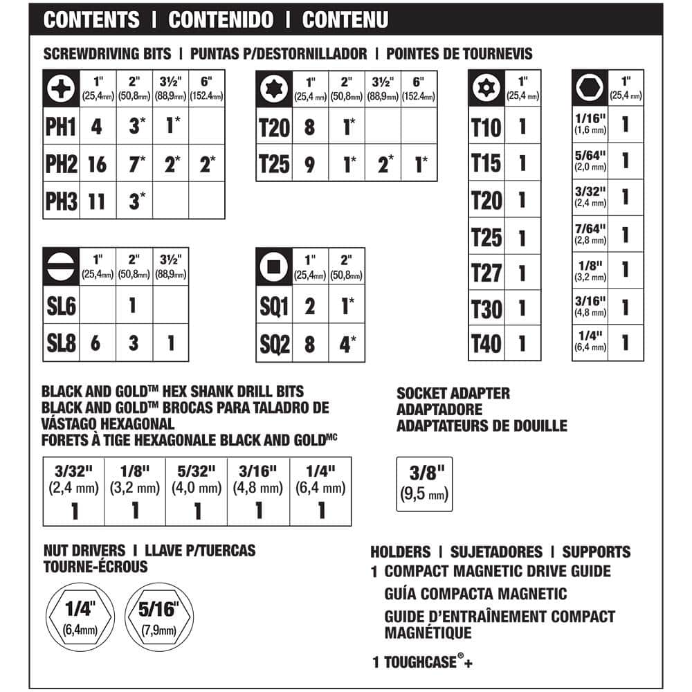 Q: Can this set be used with both impact drivers and drills? A: Yes, the 1/4 in. HEX Shank is compatible with both impact drivers and power drills, offering flexibility for various tasks.