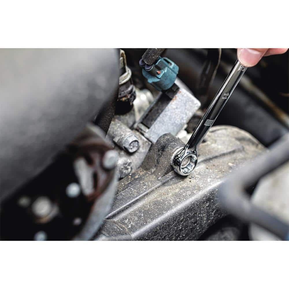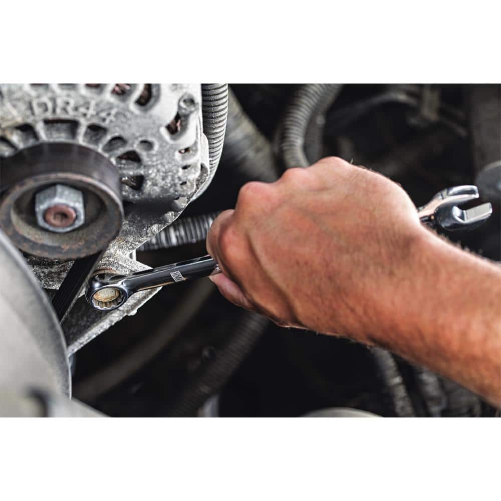 Q: How does the ratchet design enhance performance? A: The 72-tooth ratchets feature a quick-release button, allowing for faster socket changes and smoother operation in tight spaces.