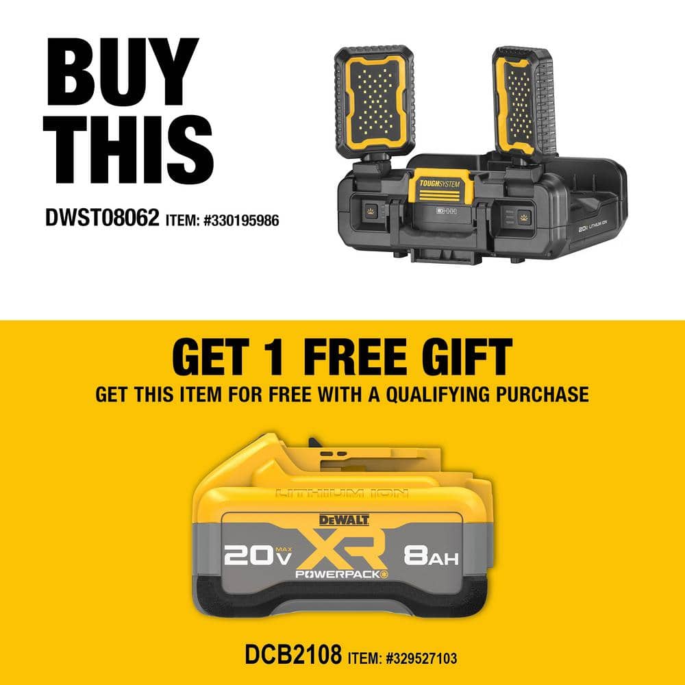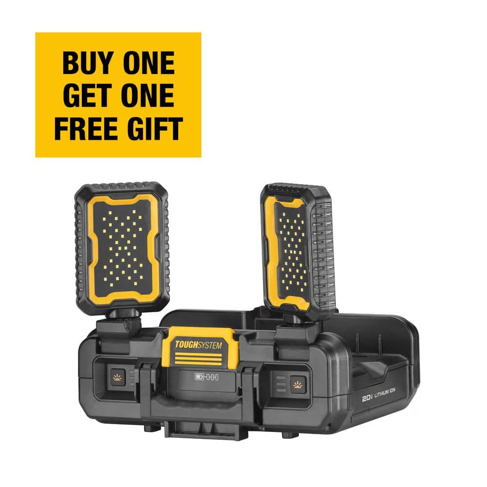 Envision your workspace transformed with the DEWALT TOUGHSYSTEM 2.0 Work Light's brilliant glow. Its sleek design featuring pivoting LED panels not only lights up the room but adds a touch of industrial elegance. Imagine stacking this cutting-edge tool seamlessly with TOUGHSYSTEM modules, creating a visually cohesive and functional workspace setup. Essential for both aesthetic and practicality, this work light is a crucial element of discerning professional environments.