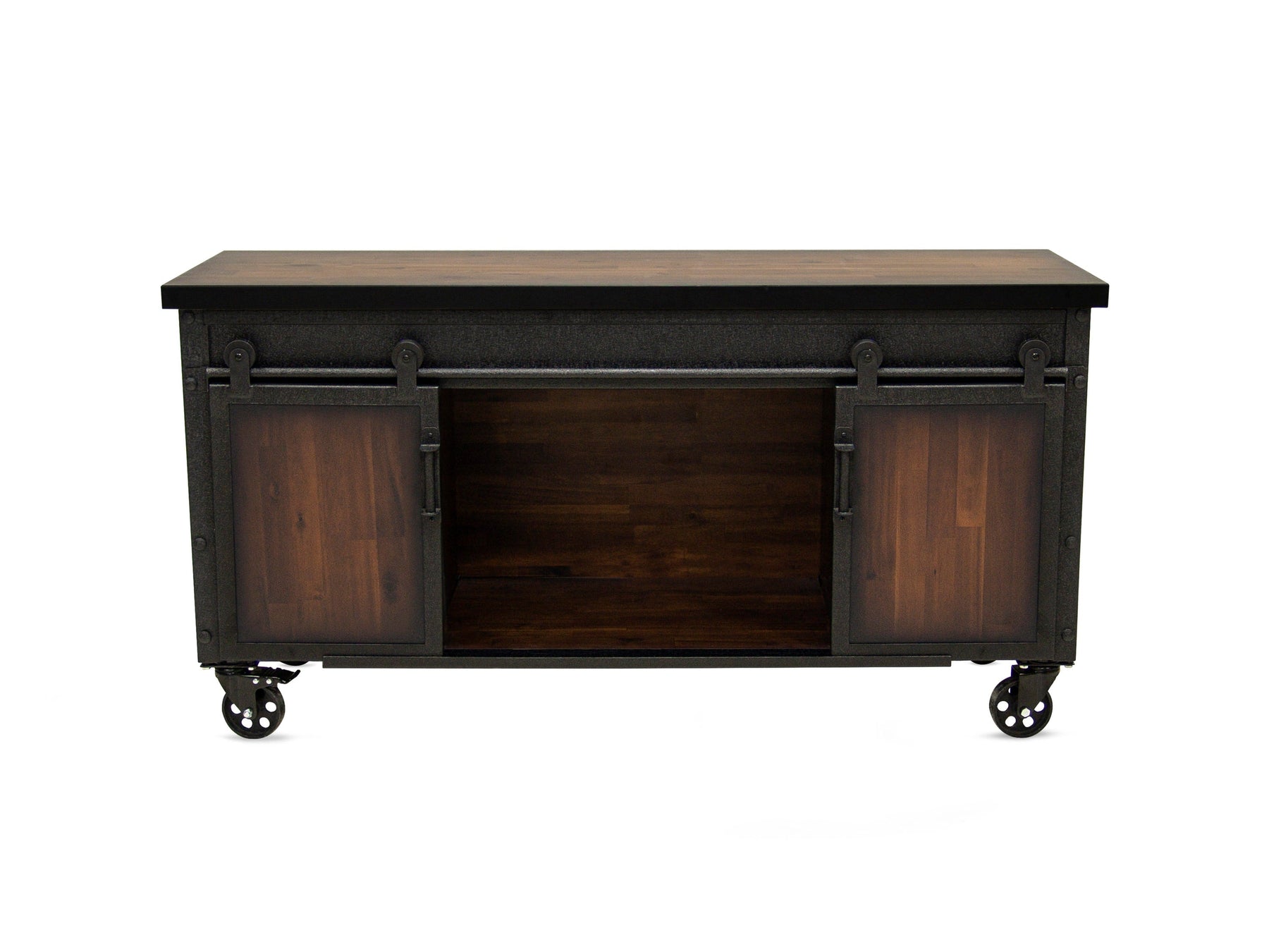 Enhance your living space with the Farmhouse Gray TV Cabinet by DuraMax, a perfect blend of vintage industrial design and rustic charm. Crafted from powder-coated steel and acacia wood, this cabinet offers rust-resistant durability, making it an ideal choice for both a stylish TV stand and functional storage solution.