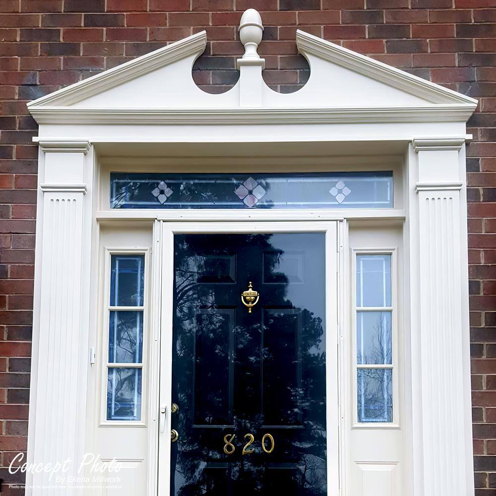 Transform your entryway into a haven of sophistication with this Elliptical Sunburst Pediment. Its sweeping curves and delicate sunburst pattern deliver a grand statement that beautifies both modern and traditional façades. Pair it with luxuriant greenery or bold sidelights to enhance its captivating aura. Essential for enriching architectural detail, it exemplifies the perfect fusion of beauty and durability.