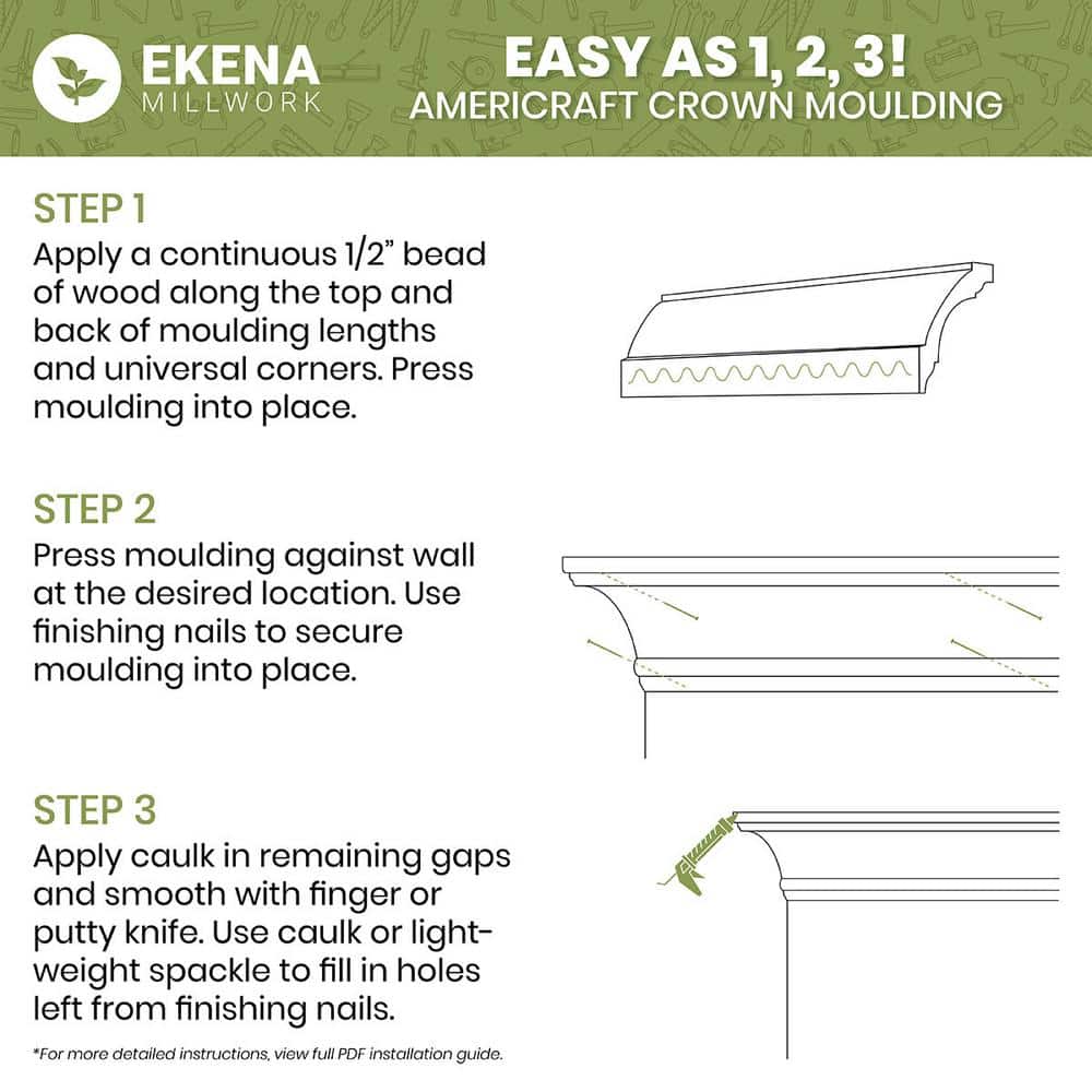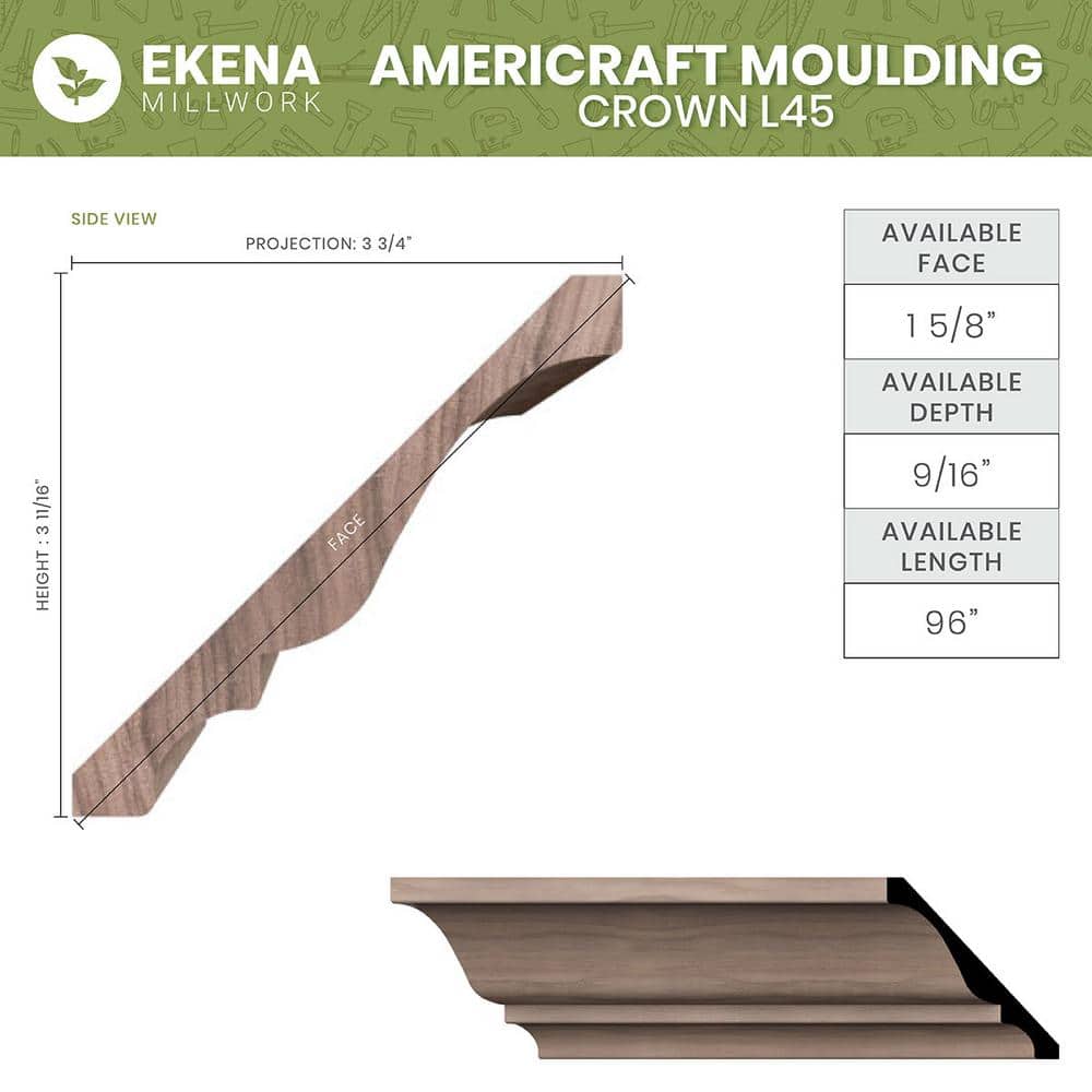 Q: How do I install this crown moulding? A: This product can be easily installed using standard woodworking tools and is designed for use with glue or nails. Always ensure correct measurements and use a level for proper alignment.