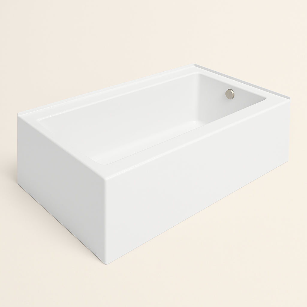 The KOHLER Elmbrook 60" x 36" Soaking Bathtub offers a sleek, timeless design with an integrated apron and right-hand drain. Made from durable acrylic, it features a comfortable soaking depth and a textured bottom for safety.