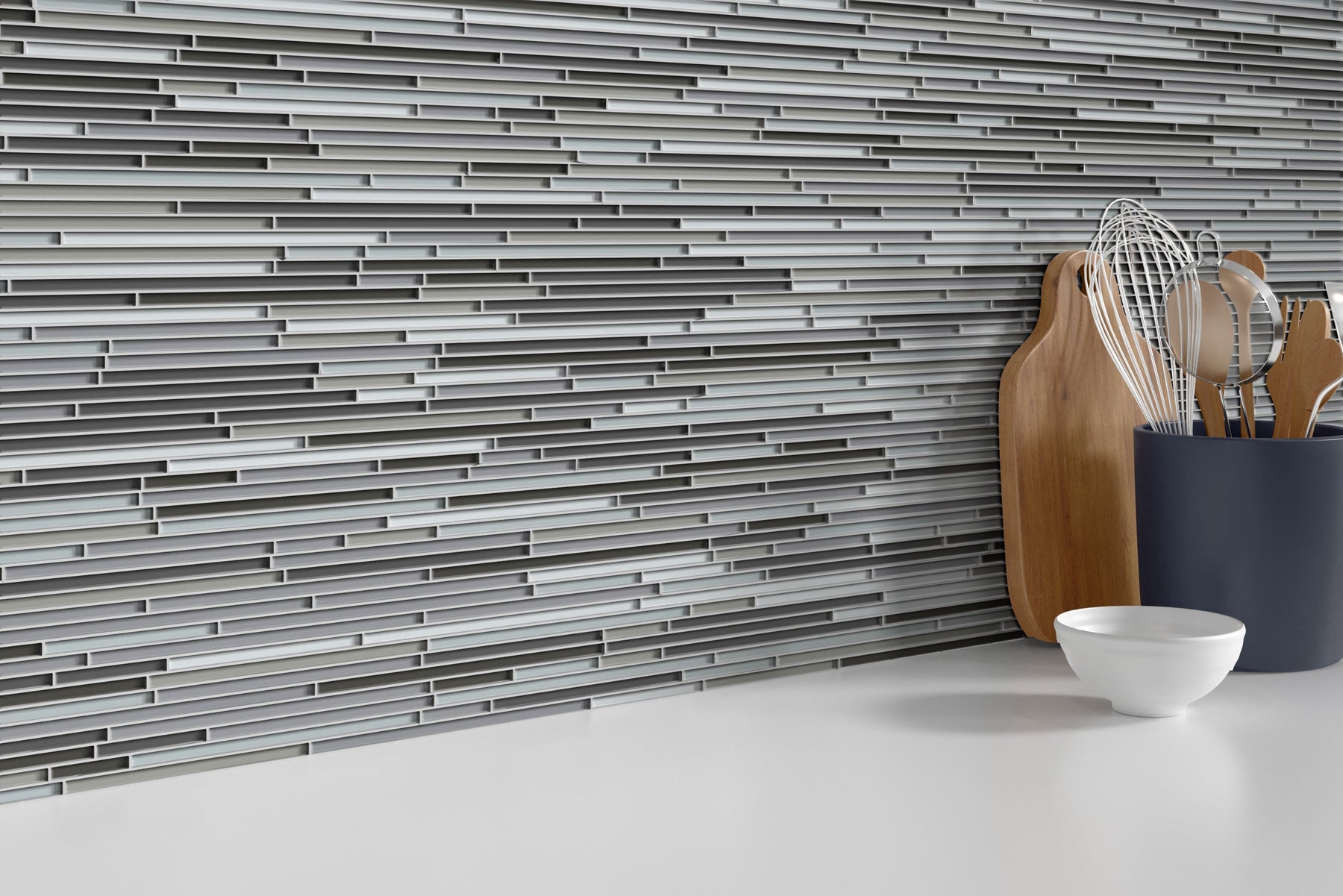 Infinity’s Time palette drapes the wall in slender glass strokes that shimmer softly, creating rhythm and depth. The glossy linear mosaic feels architectural yet warm, a sophisticated accent for kitchens and baths. Pair it with matte quartz counters and brushed nickel fixtures to let the pattern sing. It’s a chic essential that elevates everyday spaces into luxurious retreats.