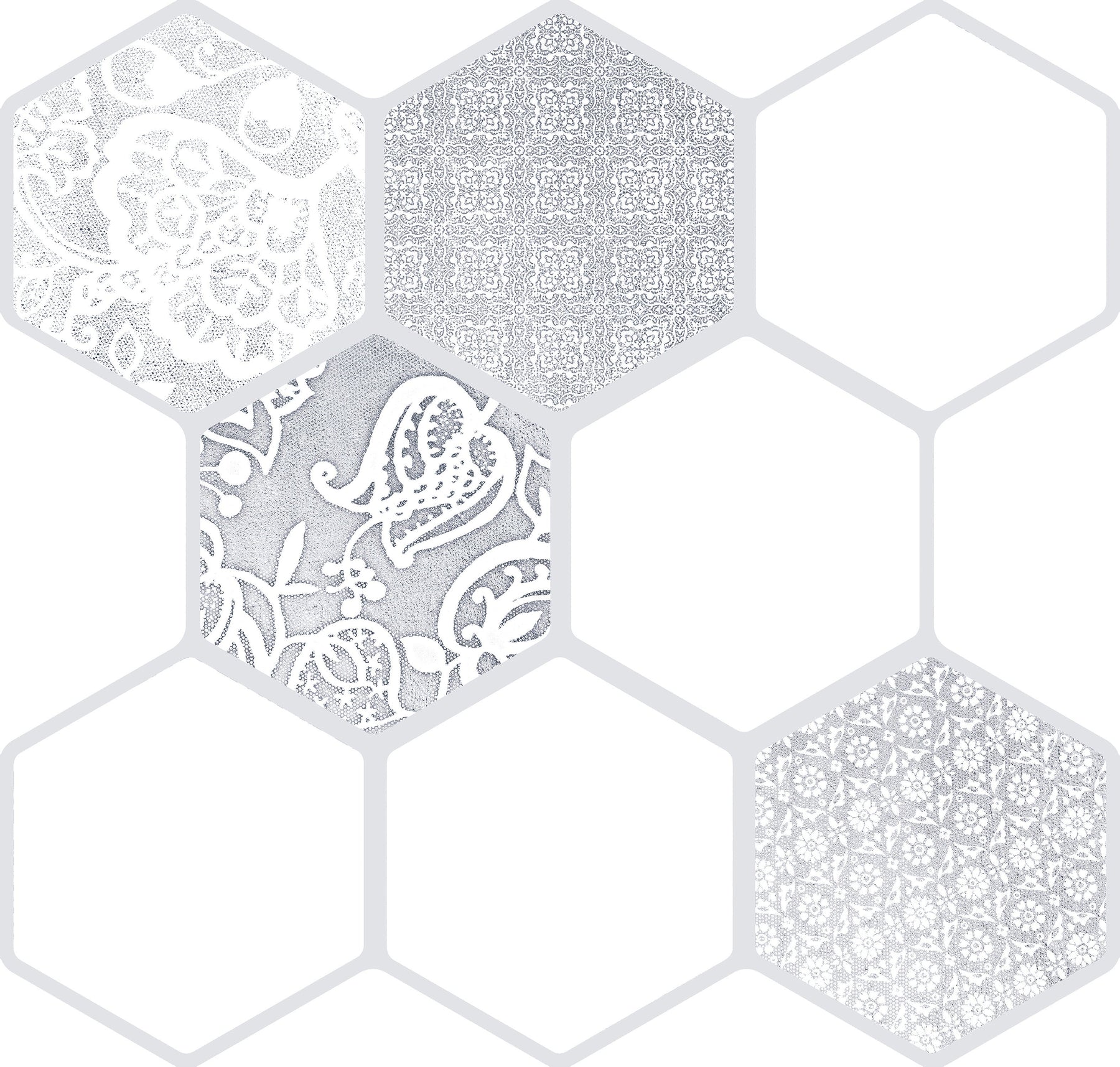 Virtue’s interlocking geometry weaves delicate lacework motifs into a refined hexagonal rhythm, elevating any room with quiet drama. The soft, layered palette and subtle pattern play offer depth without overwhelm. Mix the decorative pieces with solids for a bespoke rug effect under a dining table or across a feature wall. It’s an elegant essential for a polished, luxurious environment.
