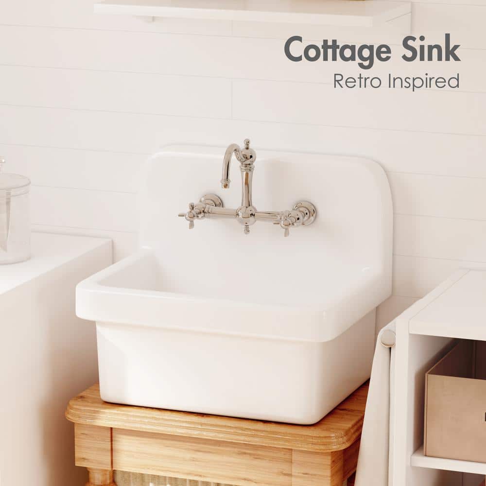 The Eridanus Mason 8 Gallon Wall Mount Utility Sink elegantly marries form and function, transforming mundane tasks into a refined experience. Its farmhouse-inspired design exudes timeless charm, making it more than just a practical addition – it's an accent that enhances any space. Whether used in a bustling laundry room or a serene studio, the sink provides ample washing capacity and ease of access. Add a sleek, industrial-style faucet to complement the crisp white ceramic, framing this sink as a centerpiece in functional elegance and everyday luxury.