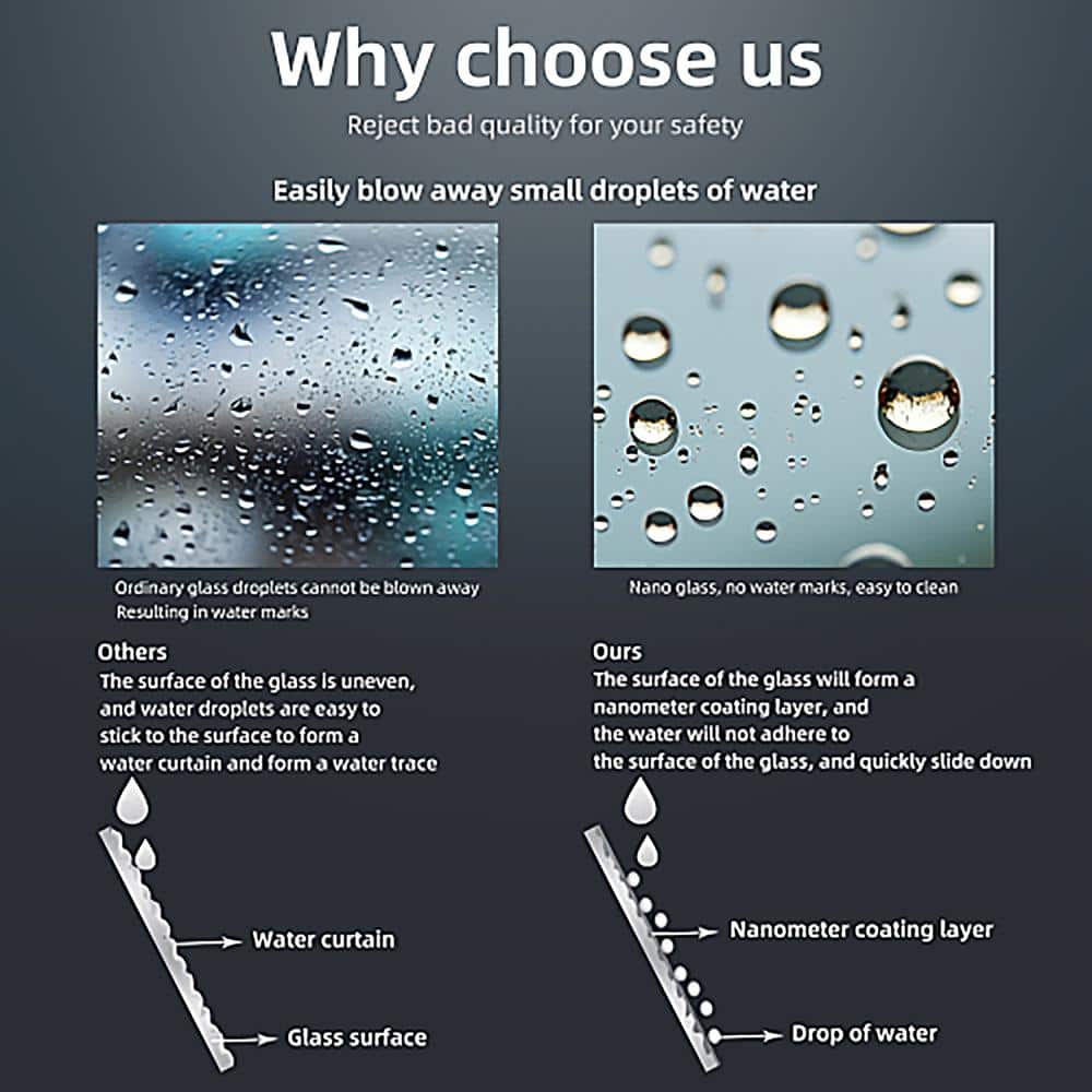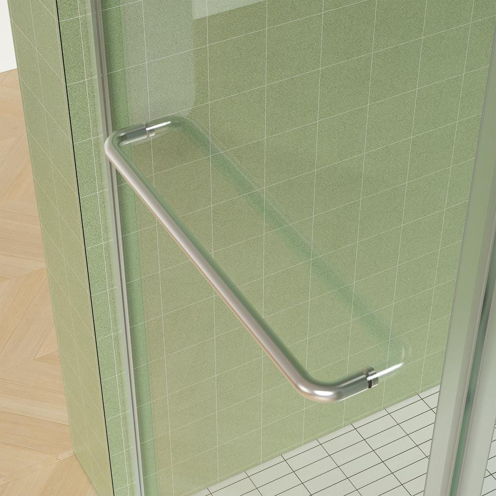 Q: What maintenance is required for keeping the glass clean? A: The shower door features a protective glass coating that repels water and stains, making it easier to wipe clean and maintain a pristine look.